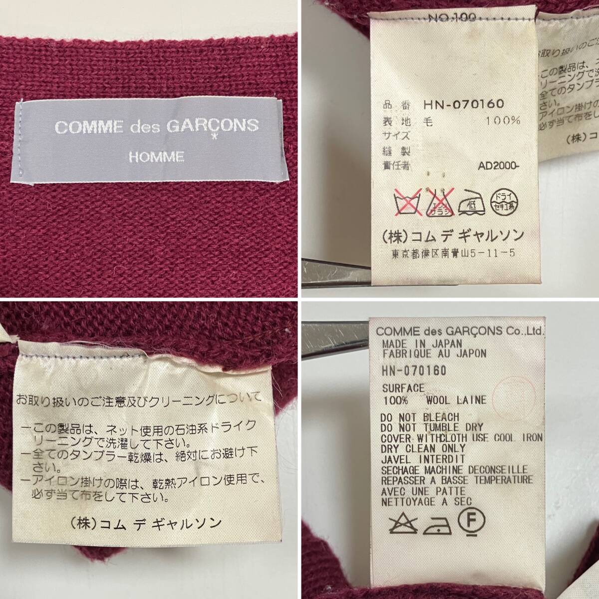 AD2000 田中オム COMME des GARCONS HOMME ウール ニット カーディガン コムデギャルソンオム セーター 00s VINTAGE archive 5040105