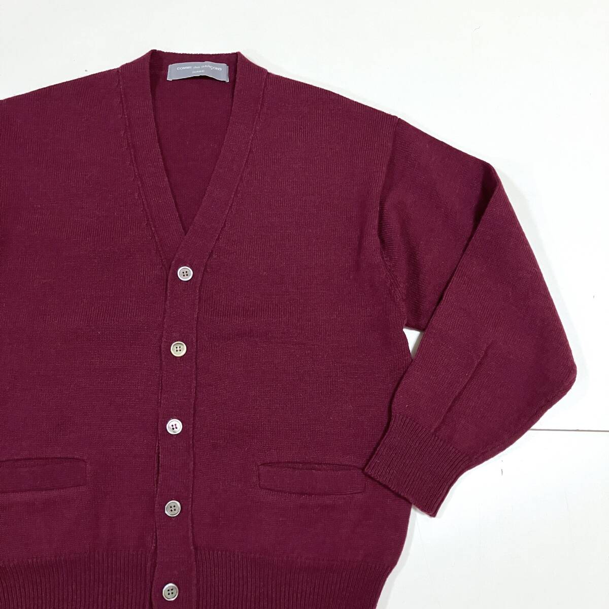 AD2000 田中オム COMME des GARCONS HOMME ウール ニット カーディガン バーガンディ 無地