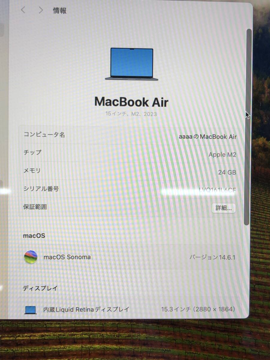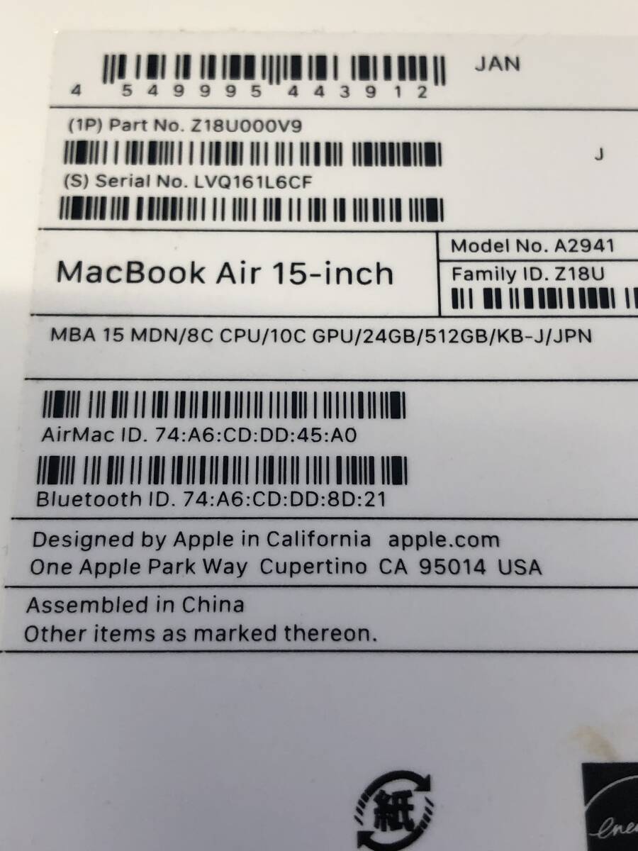 | Apple MacBook Air 15インチ M2 24GB SSD512GB A2941 | ||