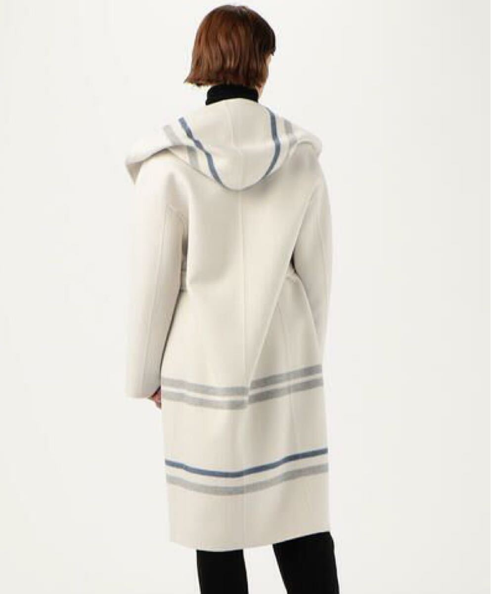 GALRIE VIEのダブルフェイスパネルボーダーフーデッドコート。リバーシブルのデザインで、ボーダー柄と無地を、お洋服に合わせて両面着用可能な緻密なお仕立て。付属のベルトでぎゅっと結んでウエストをマークしたり、両サイドのスリットに通して前だけ結ぶなどのアレンジも可能。重くなりがちな冬のスタイリングをトーンアップしてくれる大人のハイカジュアルなコート。タグ付きの未使用保管品。