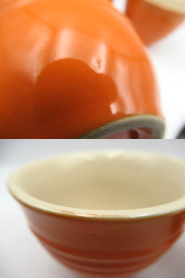| ◇長期保管品◇ ルクルーゼ LE CREUSET 湯呑茶碗 カップ&ソーサー 4客セット 管理番号:35098/H1 【買取品・長期保管品】 【サイズ】 カップ:口径約8㎝×高さ約6.5㎝ ソーサー:直径約10㎝×高さ:約3㎝ 【カラー】 オレンジ系 【内容】 湯呑み茶碗・・・4 受け皿・・・4 【付属品】 なし 【状態】 ほぼ未使用とは思われますが、詳細は不明です。 比較的美品ですが、保管時の多少の擦り傷や小傷がございます。 当方の確認ではカケやヒビ等は見られませんが見落としもある場合も ございますので予めご了承ください。 詳細は画像にてご確認ください。 あくまで保管品ですので予めご了承ください。 店舗買取品/長期保管品になります。 詳しい状態は写真でご確認下さい。 ※商品の状態の説明はあくまで出品者の主観に基づいた説明です。 ※店舗保管品です。 ※新品の様な完璧な状態では御座いません。 ※ご理解頂ける方のご入札をお願い致します。 ご入札前に必ず全文をお読みになり、 お客様が十分にご納得された上でのご入札、 ノークレーム・ノーリターンでお願い致します。 入札の取消は行っておりませんのでご注意下さい。 (ご入札された時点で同意頂いたものとします) ※画像のものがすべてになります。 ※店舗保管品の為、多少のスレキズ等ある場合が御座います。 ※専門知識が無いため質問にお答えできない場合が御座います。 ※素人検品・撮影の為写真に写り切らない汚れ・キズがある場合が御座います。 ※新品の様な100%完璧な状態では御座いません。 ※念入りに検品しておりますが見落としがある場合が御座います。 ※神経質な方、完璧をお求めの方は入札をお控え下さい。 ※御理解頂ける方のご入札をお願い致します。 ※当店はまとめてお取引には対応致しません。 全て単品でのお取引となります。 ※同梱は行っておりません。 ※商品管理上、取り置きは致しませんのでご了承下さい。 | |||