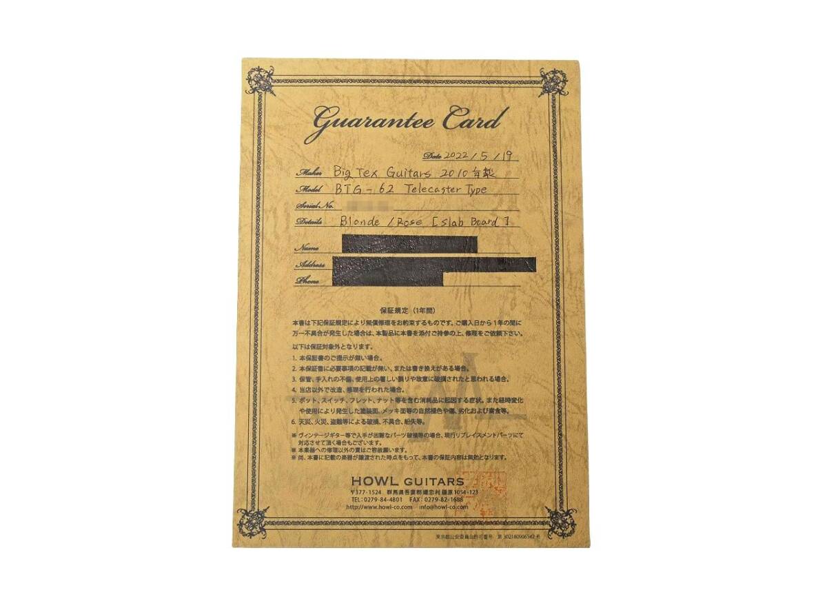 ビッグテックス テレキャスター エレキギター BTG-62 ブロンド レリック Big Tex Telecaster ソフトケース・保証書付