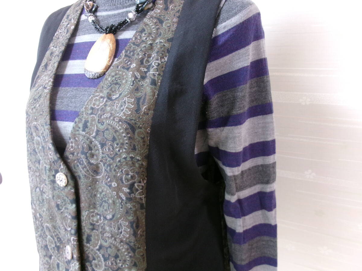 着物リメイク★ポケット付きベスト★正絹・ウール地★Lサイズ★着丈57㎝★共布でボタンホール・見返し★袖ぐりゆったり