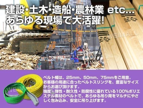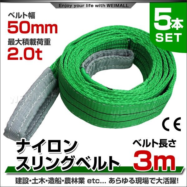 | お得な5本セット 大量購入!!ナイロンスリングベルト 耐荷2.0t 50mm×3m |
