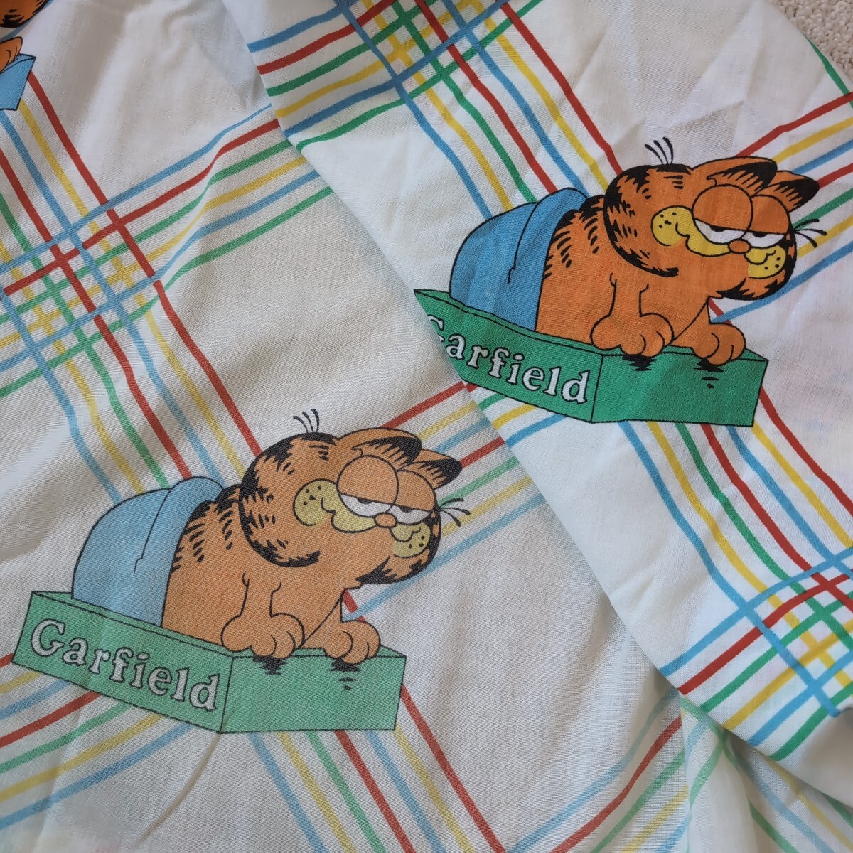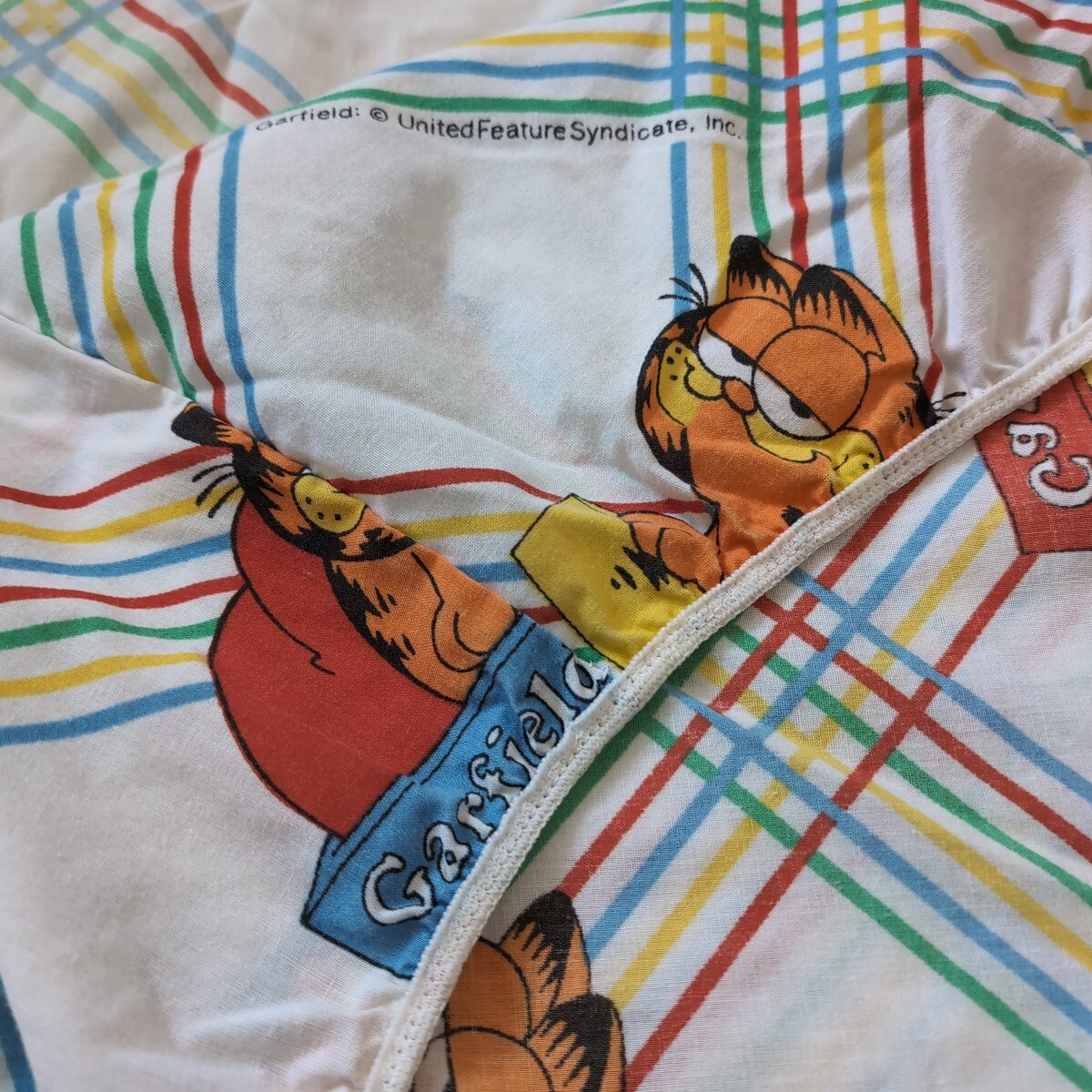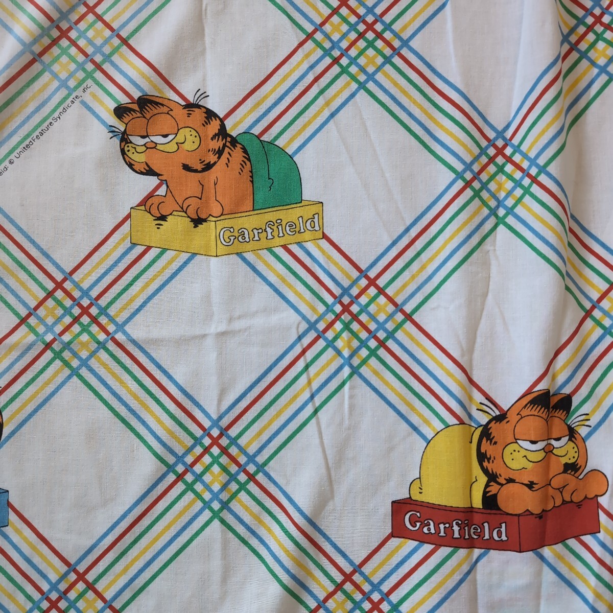 中古 美品 ビンテージ Garfield ガーフィールド 猫 ネコ フィットシーツ シーツ アメリカ USA リメイク 生地 ハンドメイド