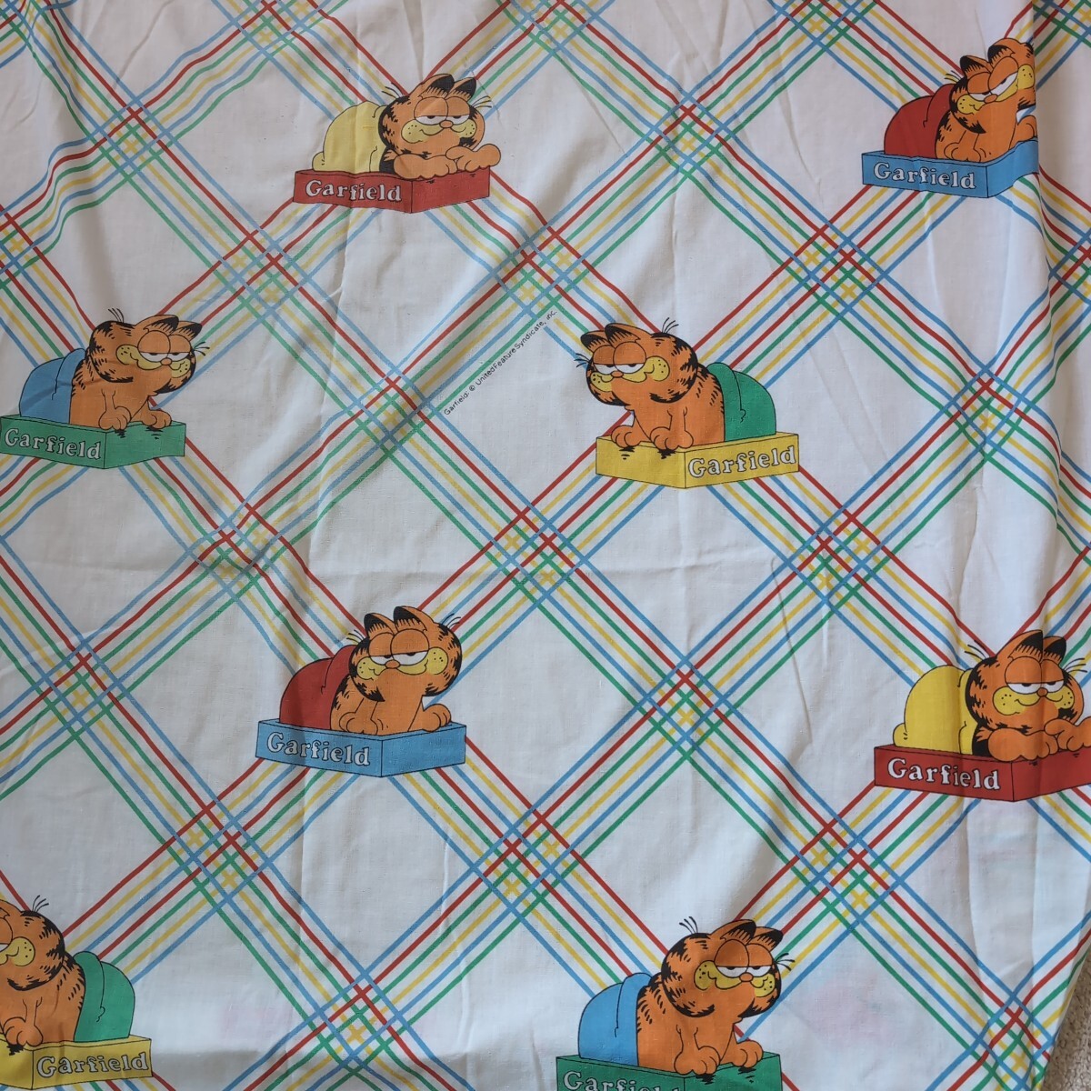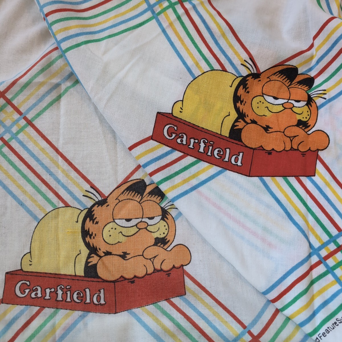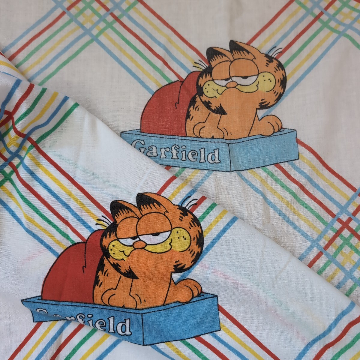 中古 美品 ビンテージ Garfield ガーフィールド 猫 ネコ フィットシーツ シーツ アメリカ USA リメイク 生地 ハンドメイド