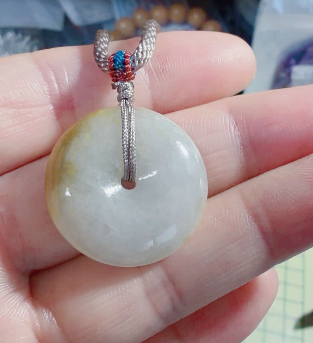 R2-02683天然本翡翠《本物保証》飄黄翡ひすい 平安叩ペンダント 一点物 魔除け 昇進 成功 風水 金運財運 幸運 幸福 縁起物 パワーストーン