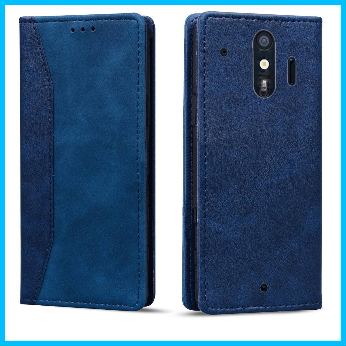 Torske らくらくスマートフォン F-42A / me F-01L スマホケース らくらくホン F-42A ケース らくらくホン F-01L ケース 手帳型 らくらくフォン f42a ケース 内蔵マグネット開閉式 ベルトなし ドコモ らくらくフォンf-01l ケース f42a手帳型ケース カードポケット 防水 折り畳み式 横置き機能 便利 らくらくホン f01l ケース (ブルー)