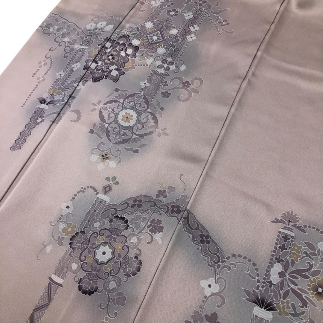 付下げ 華柄模様 花唐草 暈し 灰桜色 K-5481 着物 きもの kimono 和服 和装 中古 リサイクル着物 【送料無料】