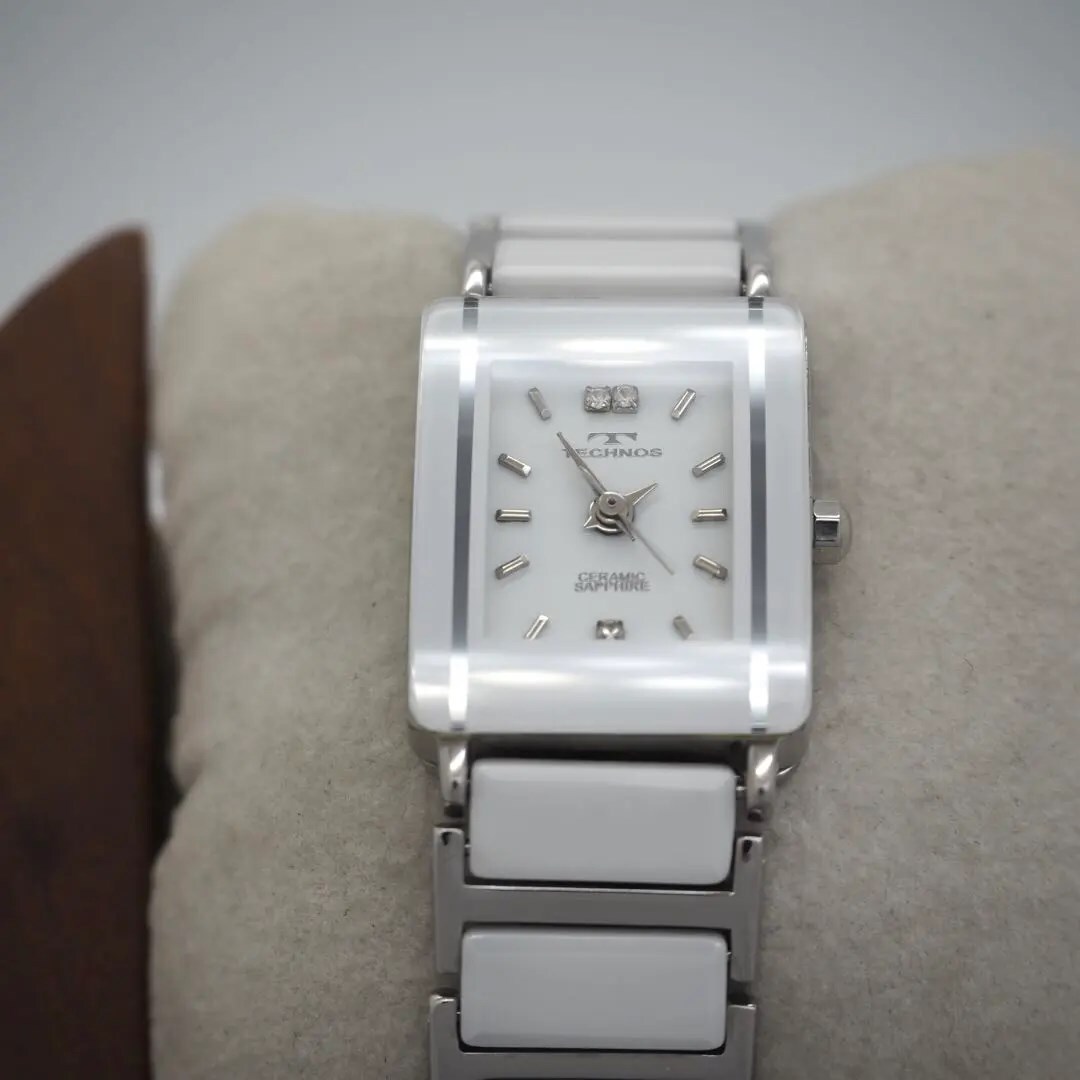 40 TECHNOS セラミック スクエア レディース 時計 ホワイト