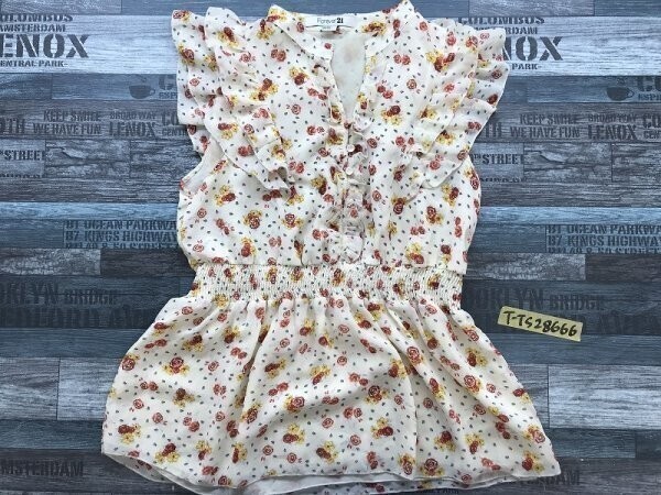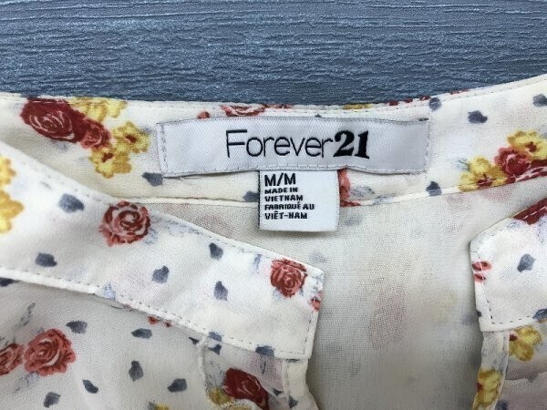 FOREVER 21 フォーエバー レディース ウエストシャーリング シフォンブラウス M クリーム赤 です。