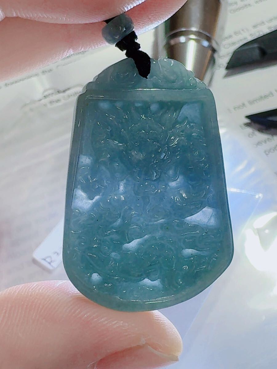 R2-02692-1天然本翡翠《本物保証》藍水龍牌 翡翠ペンダント 一品一図 高品質 一点物 魔除け 昇進 成功 風水 金運 財運 幸運 幸福 縁起物