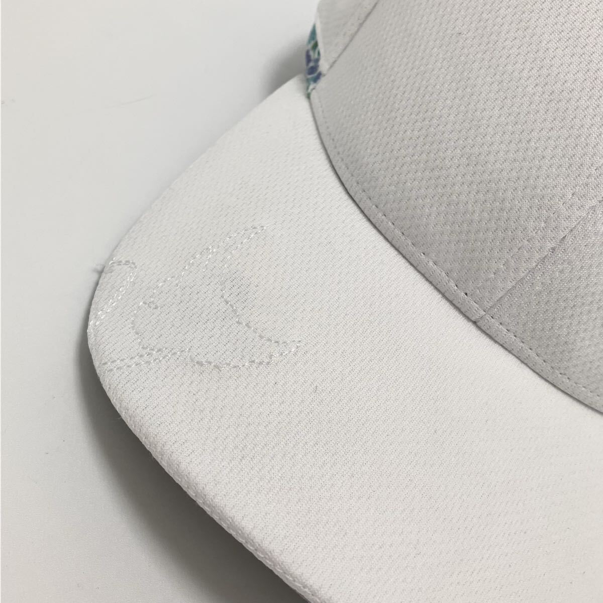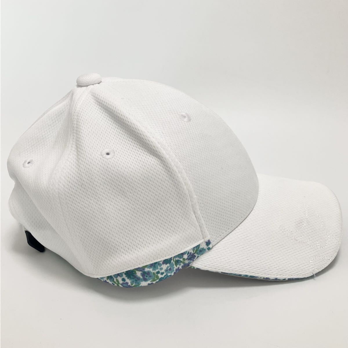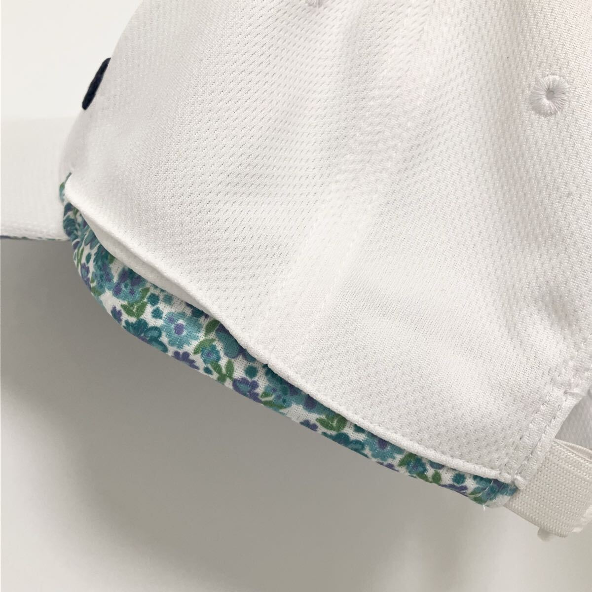 正面にブランドのロゴマークの文字刺繍が入ったキャップ。サイドの花柄がアクセントです。