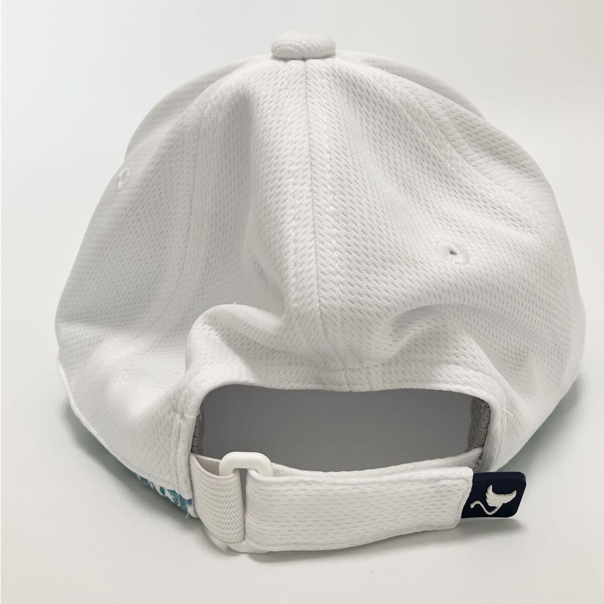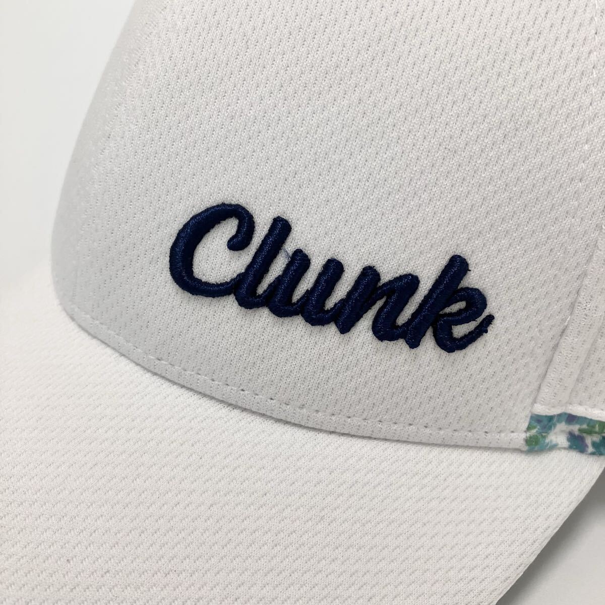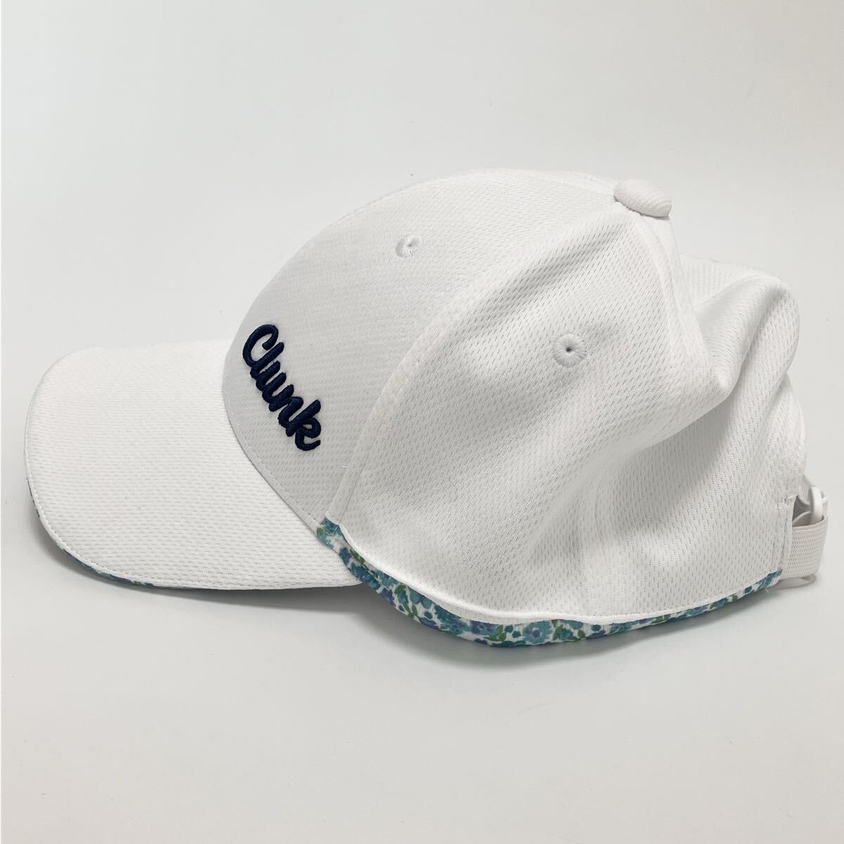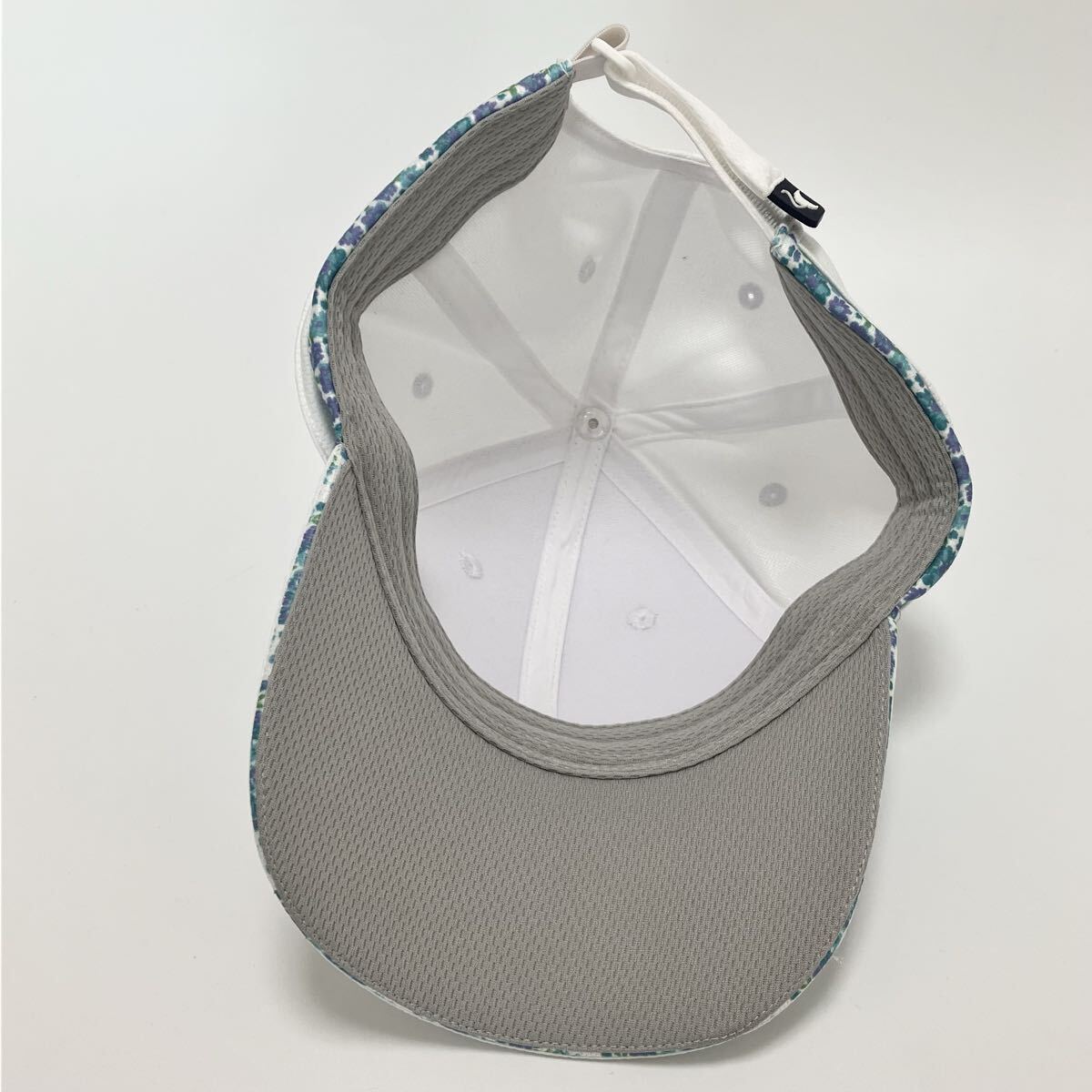 正面にブランドのロゴマークの文字刺繍が入ったキャップ。サイドの花柄がアクセントです。