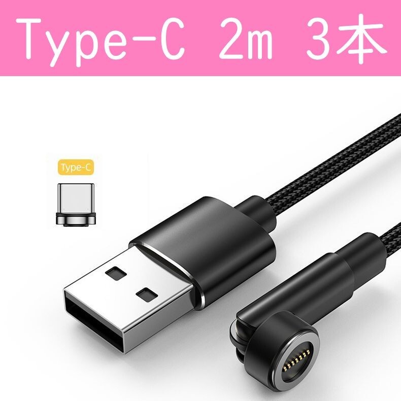 Type-C 2m黒色3本曲るマグネット磁石式USB充電通信ケーブル タイプC