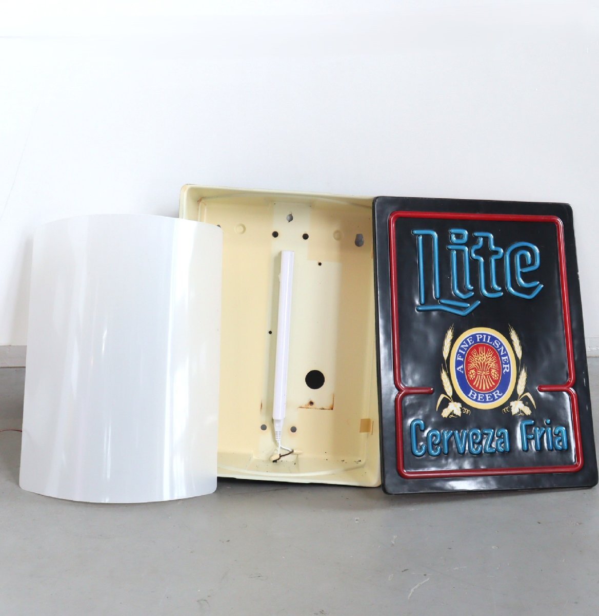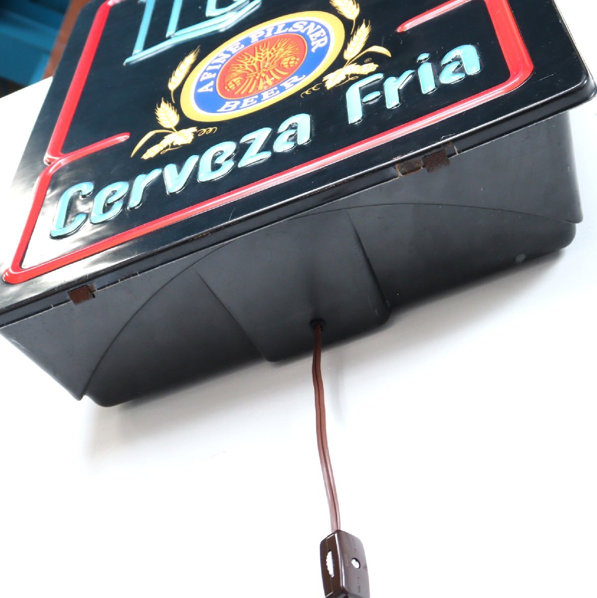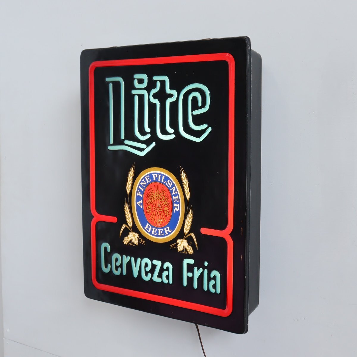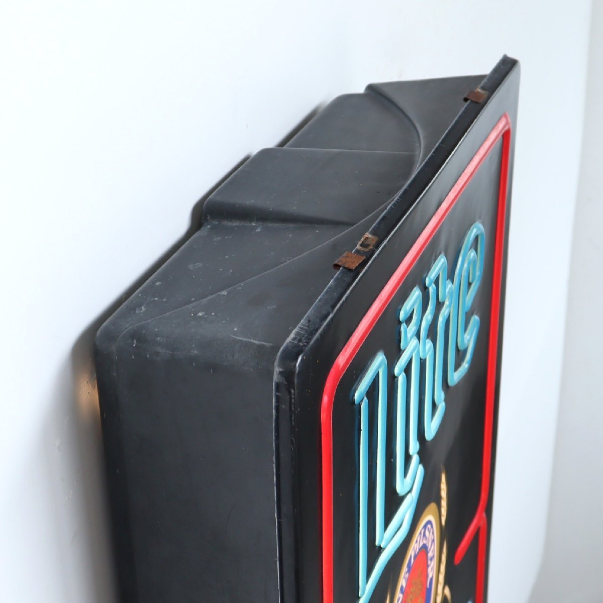 | 商品説明 explanation | 「Miller Lite Beer」のライトサインです。 ミラーライトは、1975年に全米で低カロリービールを発売し、2002年頃にはアメリカのビール市場の44%を占める程にまで人気が上がり続けていました。 そんな人気のあるミラーライトのコレクターズアイテムは、非常に人気なアイテムです。 お店の雰囲気づくりやガレージなどにいかがでしょうか。 電球は日本で市販されているLEDバーランプを使用しています。 |