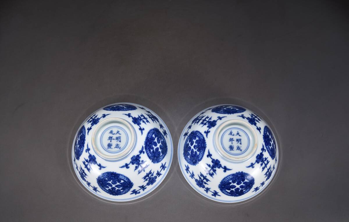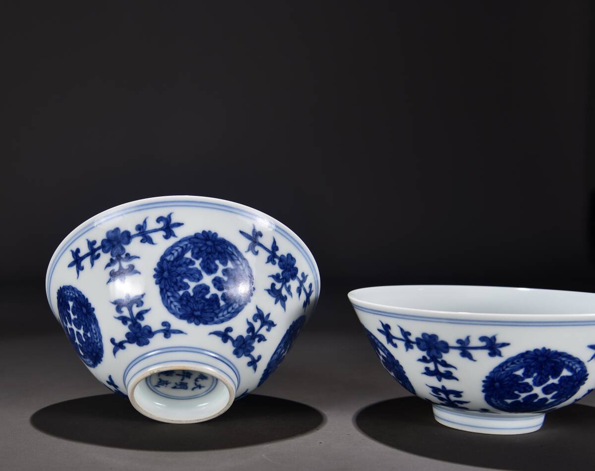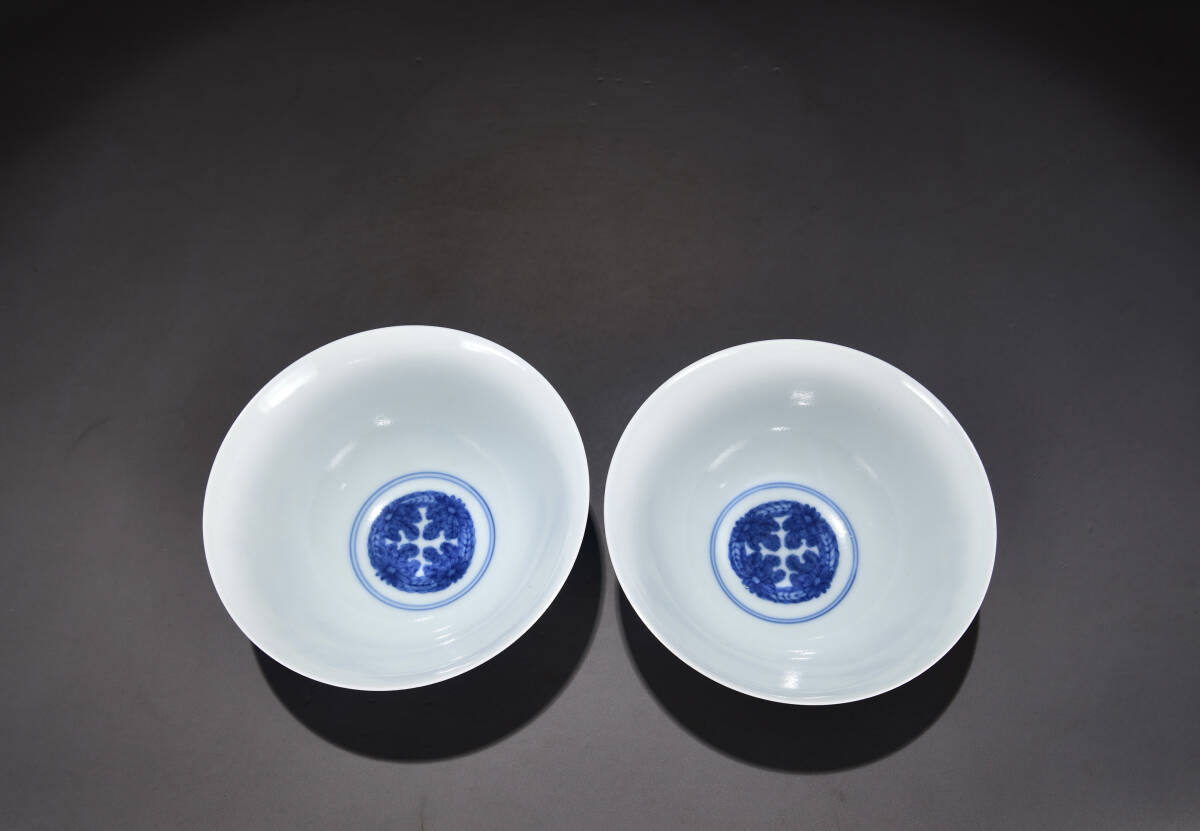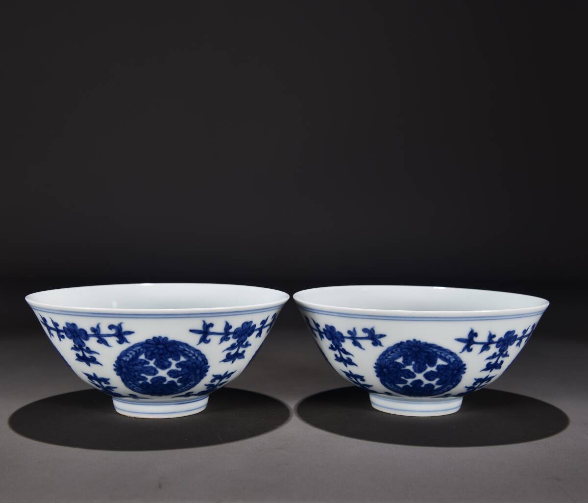 明時代 成化年製款 古陶磁器 青花 花紋 主人杯 一対 茶具 茶杯 茶道具 時代物 古董品 骨董 旧家蔵出し 唐物 中国古玩 古美術品