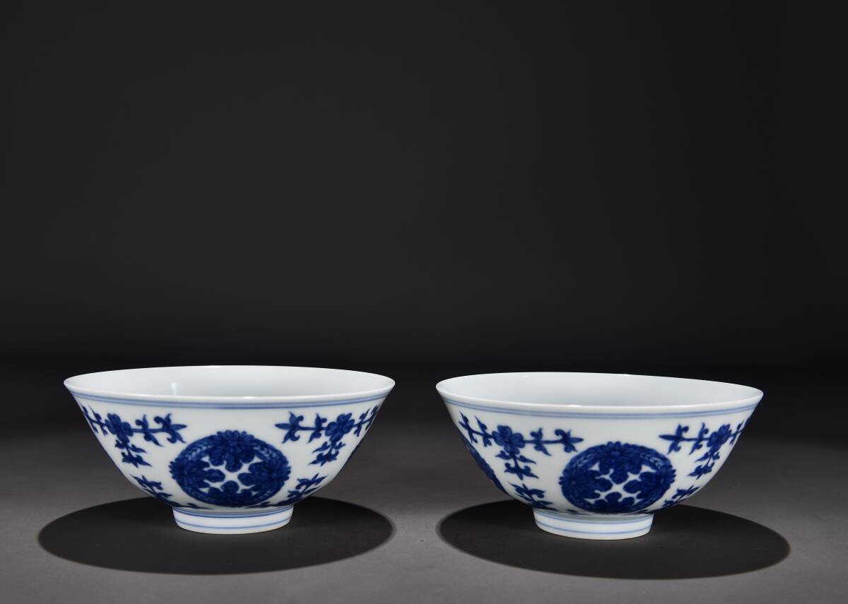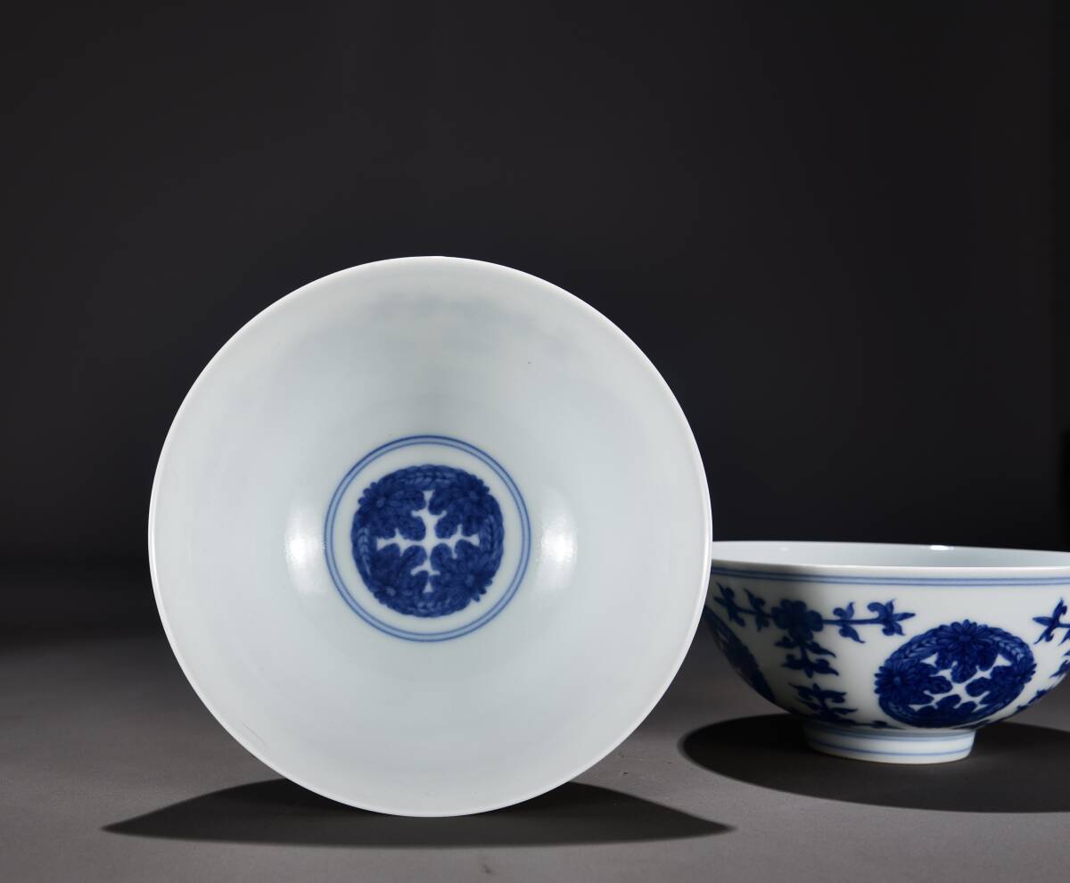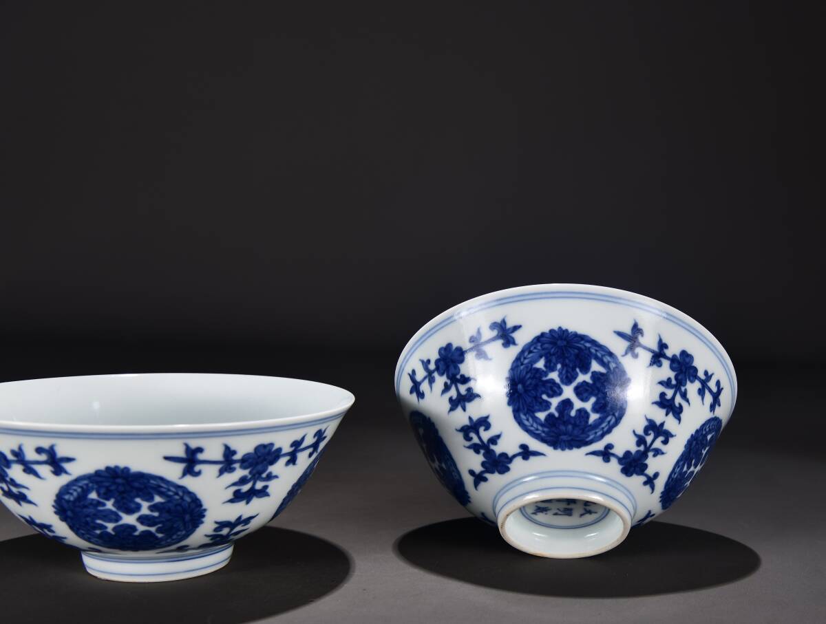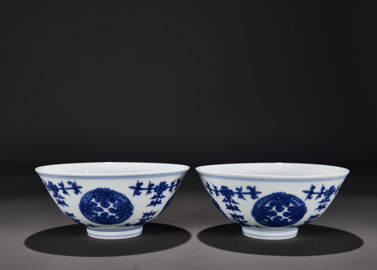 明時代 成化年製款 古陶磁器 青花 花紋 主人杯 一対 茶具 茶杯 茶道具 時代物 古董品 骨董 旧家蔵出し 唐物 中国古玩 古美術品