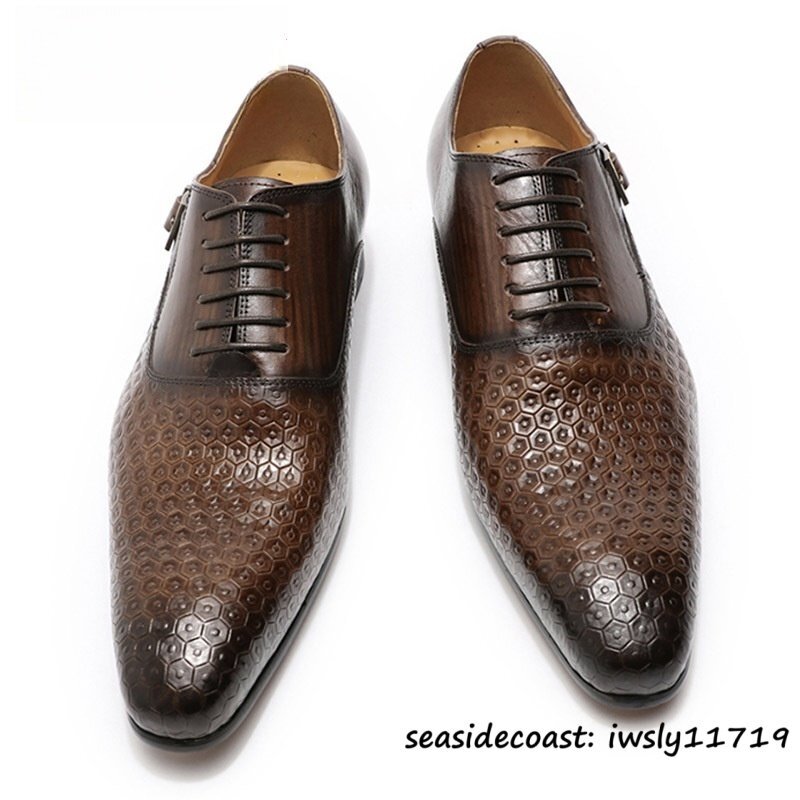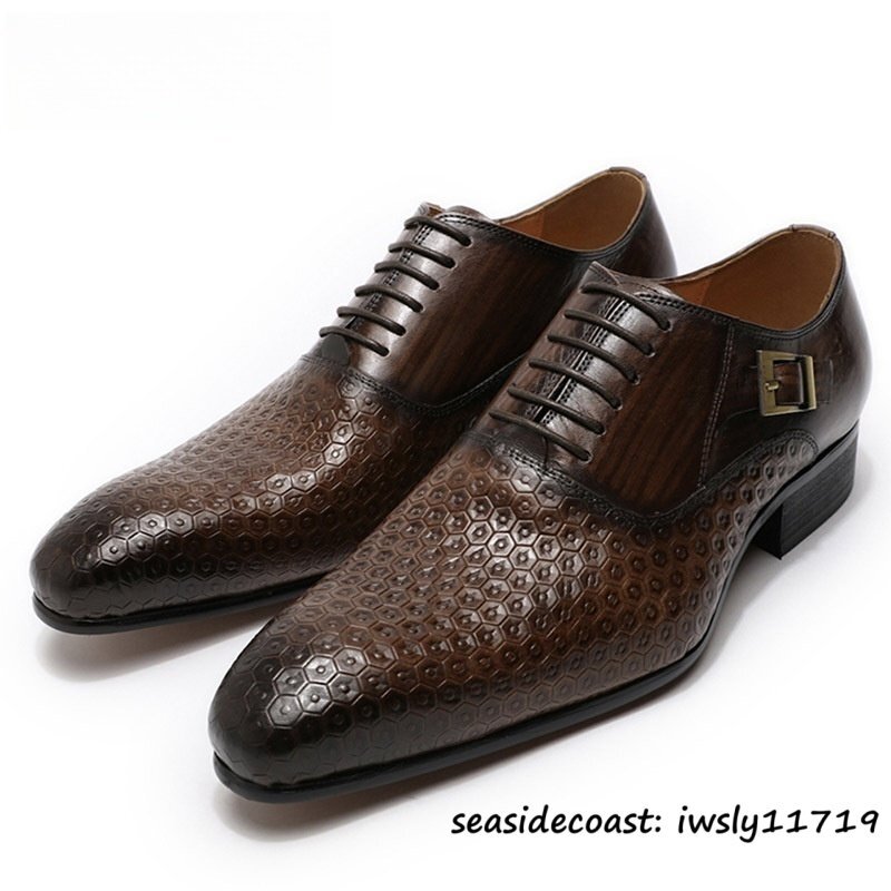 定価9万超★最高級 牛革 ビジネスシューズ 本革 レザーシューズ 厚底 超希少 職人手作り 紳士靴 フォーマル 革靴 冠婚葬祭 珈琲色 25.0cm
