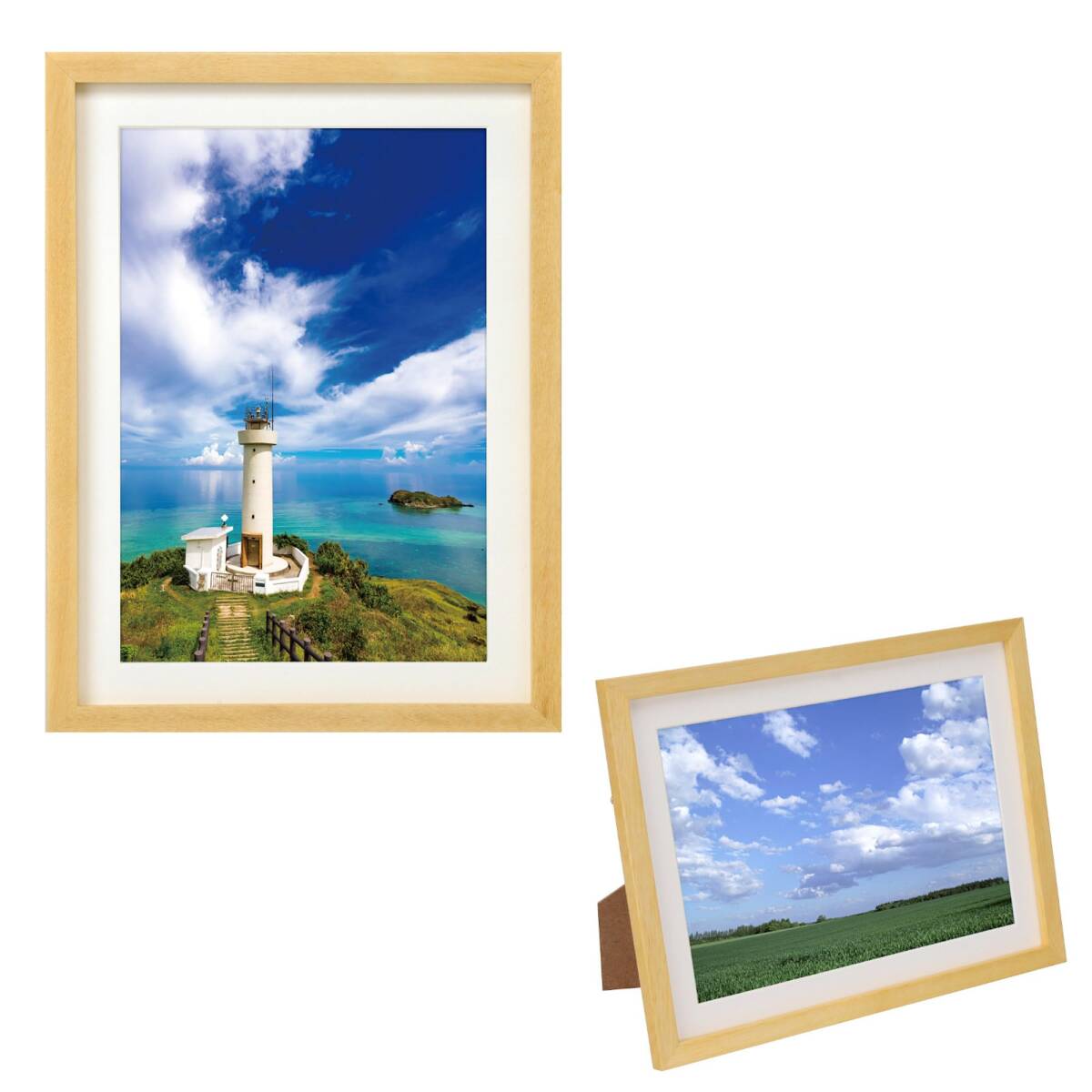 説明 お写真を引き立てる、飾りのないシンプルな角形のデザイン。 タテヨコ両対応のスタンド付きです。 複数枚、また違うサイズと組み合わせて飾ってもステキです。 【ご注意】 本製品には自然の木目を活かすために天然の木材を使用しております。 このため節が見られたり、木目や色が製品写真と異なったり、重さが表記と異なる場合がございます。 あらかじめご了承ください。 ■フレーム材質 : 木製 ■額縁外寸法 : W267×H354×D14mm ■マット外寸法 : W245×H332×D1mm ■マット中抜寸法 : W190×H277mm ■マット仕様 : Vカットマット紙 ■前面板 : ガラス ■重量 : 約715g ■吊りヒモ : あり ■スタンド : あり