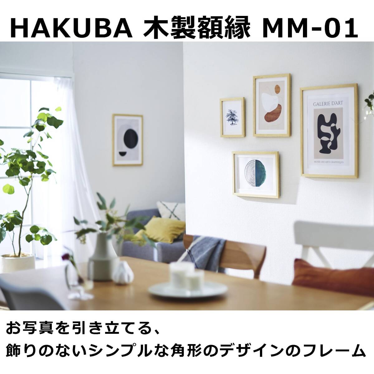 HAKUBA 木製額縁 MM-01 A4サイズ ナチュラル スタンド付き フォトフレーム ガラス板 吊り紐付 タテヨコ対応 Vカットマット AM