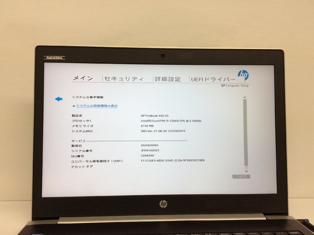 ジャンク/ HP HP ProBook 450 G5 Intel Core i5-7200U メモリ8.19GB ストレージ無し 【K23971】