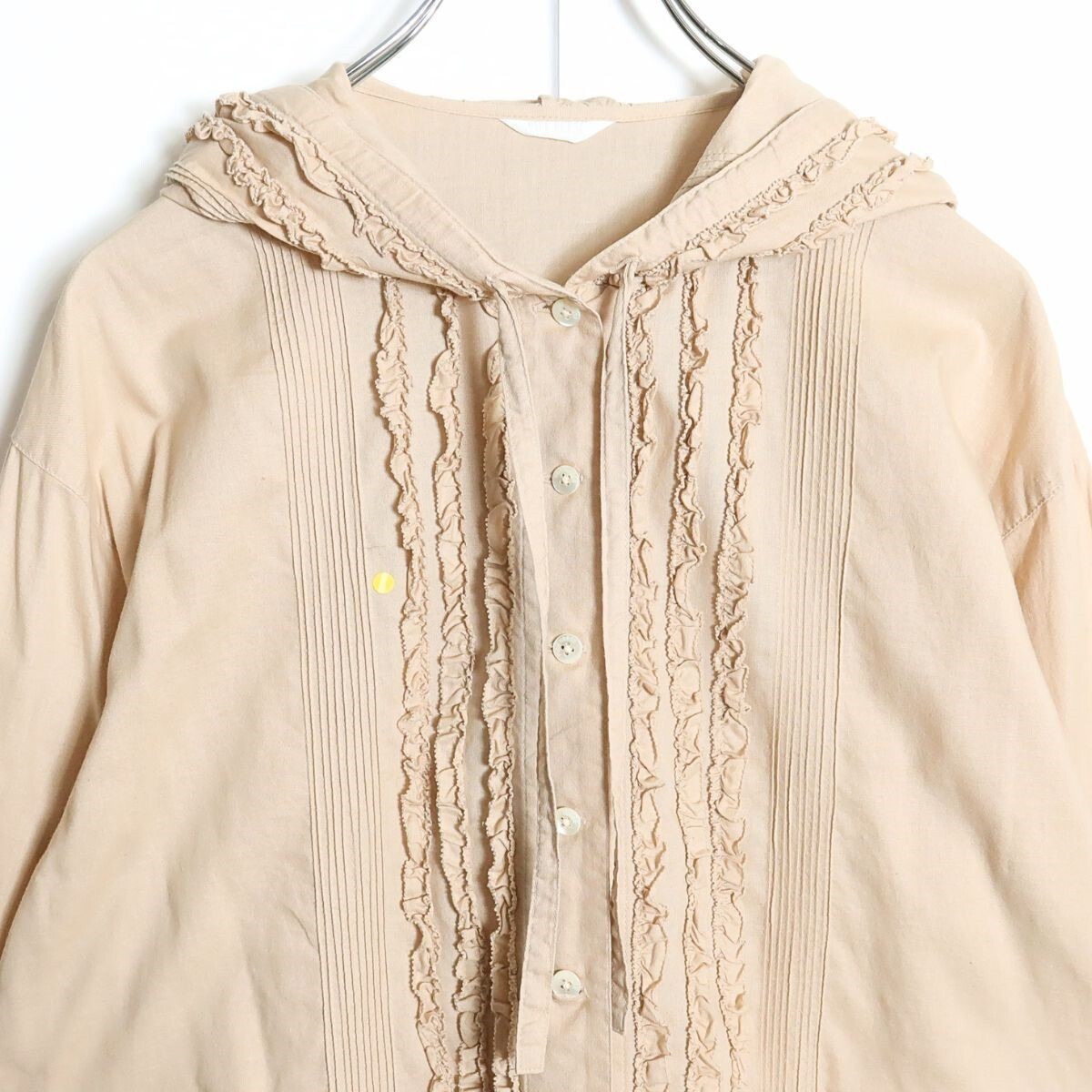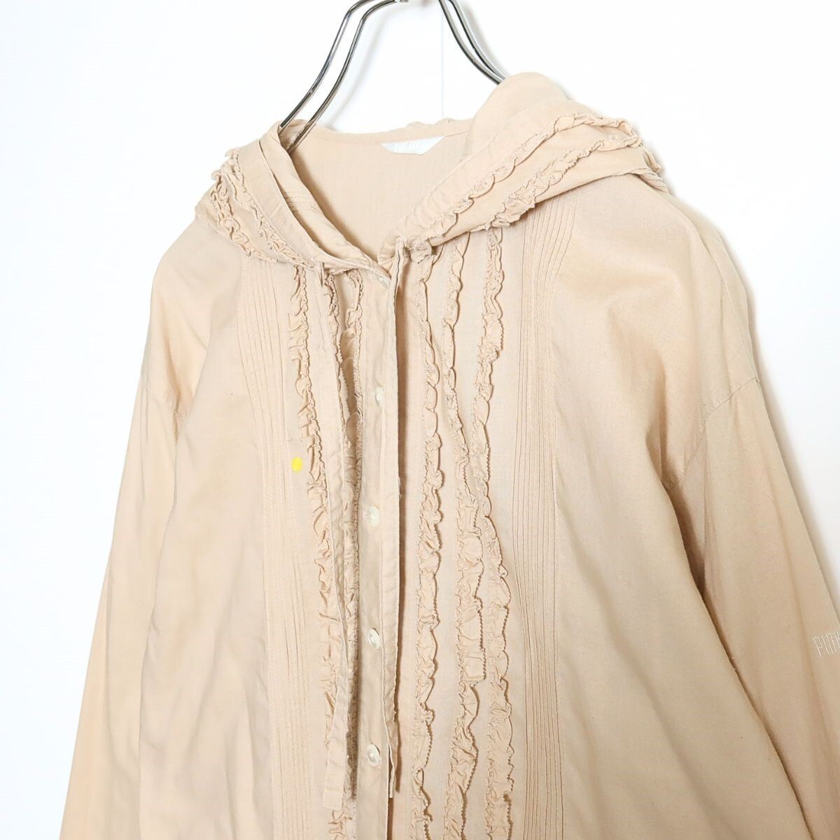 | 商品説明 | 【実寸約】裄丈87バスト112着丈72(cm) 【サイズ表記】 L 【素材】 綿100% 【状態】普通の使用感のあるお品物 フロントに薄汚れ少々あり 【デザイン】薄いピンク系 フード付きの長袖ブラウスです。 薄手/無地 ピンタック&ピコフリル付き |