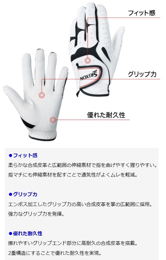 ダンロップ SRIXON スリクソン グローブ ホワイト 26cm 5枚 GGG-S030 手袋