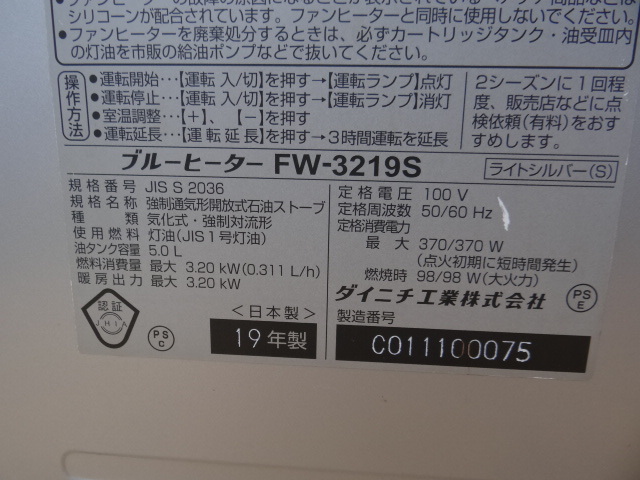 | DAINICHI FW-3219S ダイニチ ブルーヒーター 石油ファンヒーター 2019年製 |