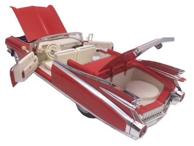Jinlifang社製 キャデラック 1959 エルドラド こちらの商品はプルバックアクション機能が付いておりますので チョロQのように走らせる事が出来ます。 未使用、新品 スケールは1/24 ミニカーサイズ:全長約24cm×高さ約5.8cm×幅約8.7cm ボタン電池のLR-44を3個(新品)お付けいたしますので、 ご自身で電池のセットをお願いいたします。 電池の組み込み、交換には小さめのプラスドライバーが必要です。 ボディはダイキャストメタル製、シャーシや内装はプラスチック製。 ●ギミック ・運転席のステリングホイール(ハンドル)を押すとエンジンスタート音と 走行音、ブレーキ音が鳴り、ヘッドライト&テールライトも点灯。 ドアを開けるとクラクションの音やキーロックの音などが鳴り ヘッドライトとテールライトが点滅します。 ※ご注意※ 製品の構造上、ヘッドライトは少し暗めに点灯いたします。 明るい場所では点灯していないように見えるかもしれません。 予めご了承くださいませ。 ・フロントサスペンションは左右独立式で可動。 ・リアサスペンションは車軸ごと一体式で可動。 ・運転席のステリングホイール(ハンドル)を回すと前輪ステリングが連動して動きます。 ボンネット開閉可能、エンジンルーム再現。 両サイドドア(2枚)が開閉可能。 トランク開閉可能。 ドアミラーは柔らかいプラ製なので折れる心配がありません。 左ハンドル仕様。 内装は白。 ※こちらの商品は箱入りではございますが、輸入時からツブレ、へこみ、破け、傷などがございます。 予めご了承下さいませ。 神経質な方にはお勧めできません *1台1台作動チェック及び検品し、丁寧に梱包しておりますが、 輸入時からの微かな汚れ、傷がある場合がありますのでご了承下さい。 |