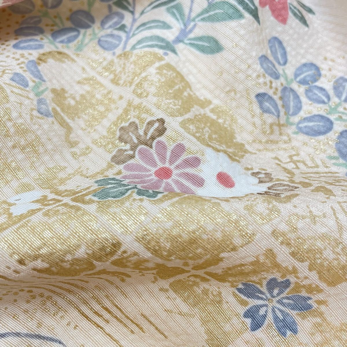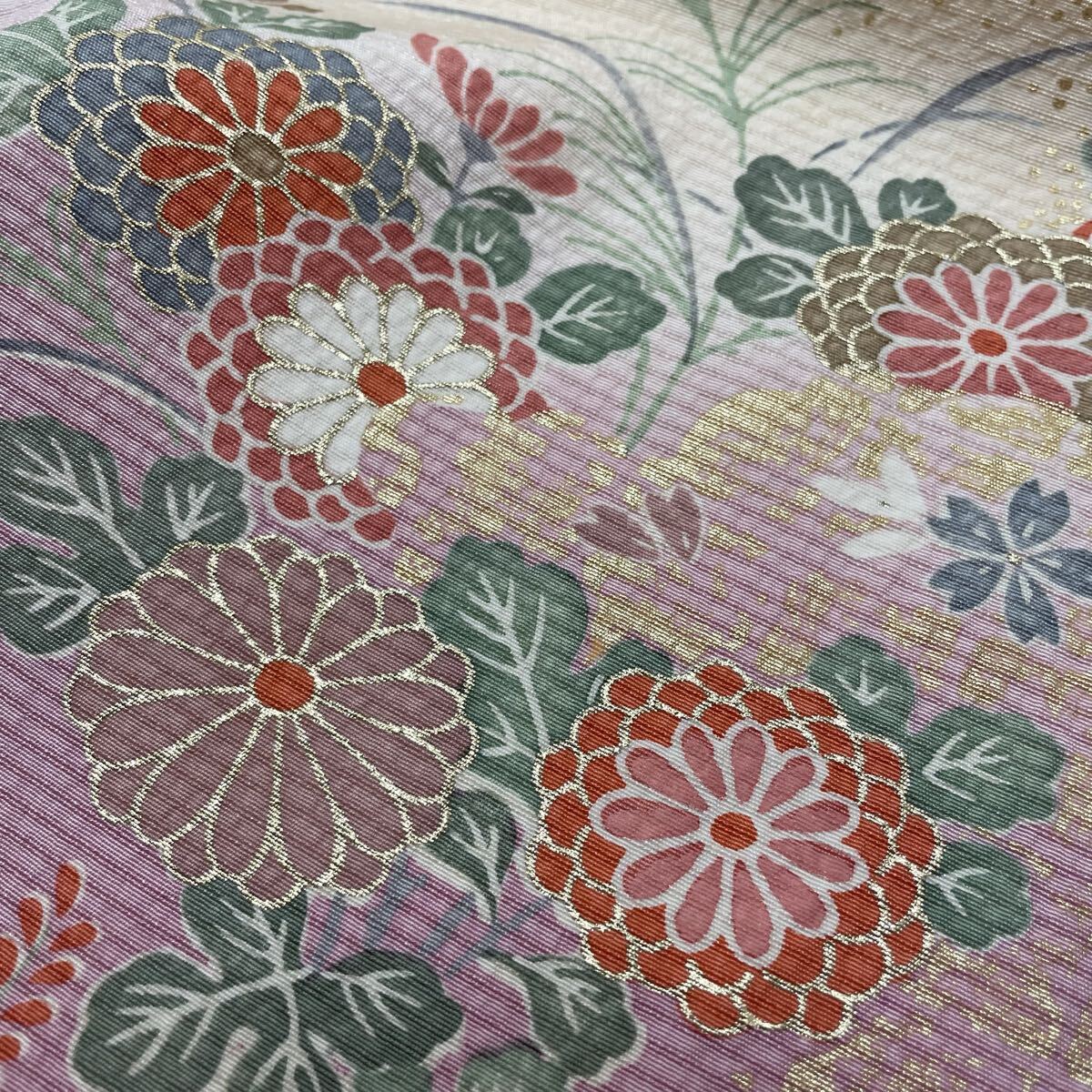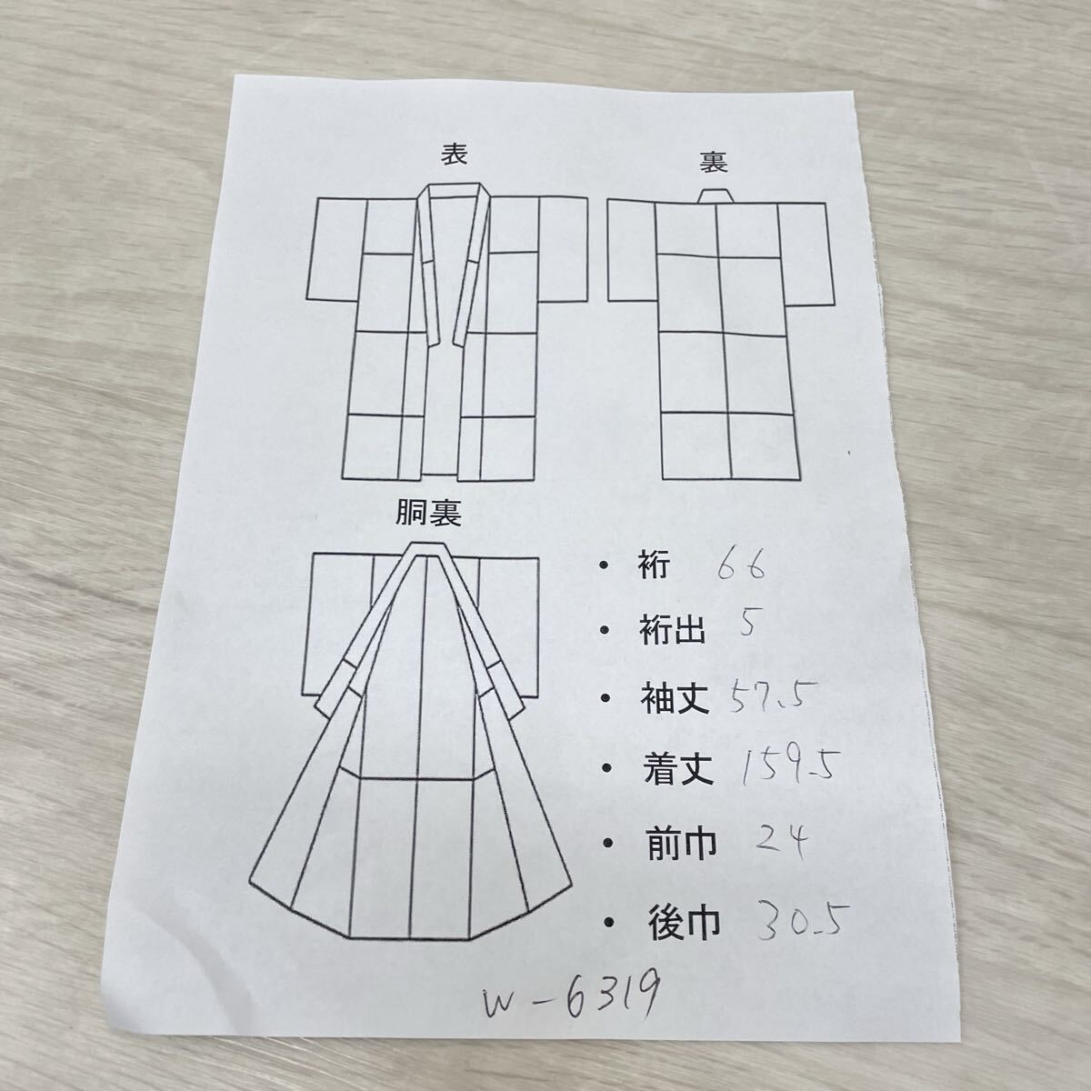 小紋付下げ ちりめん 裄66 金彩 華やかな染め 着物 正絹 W-6319