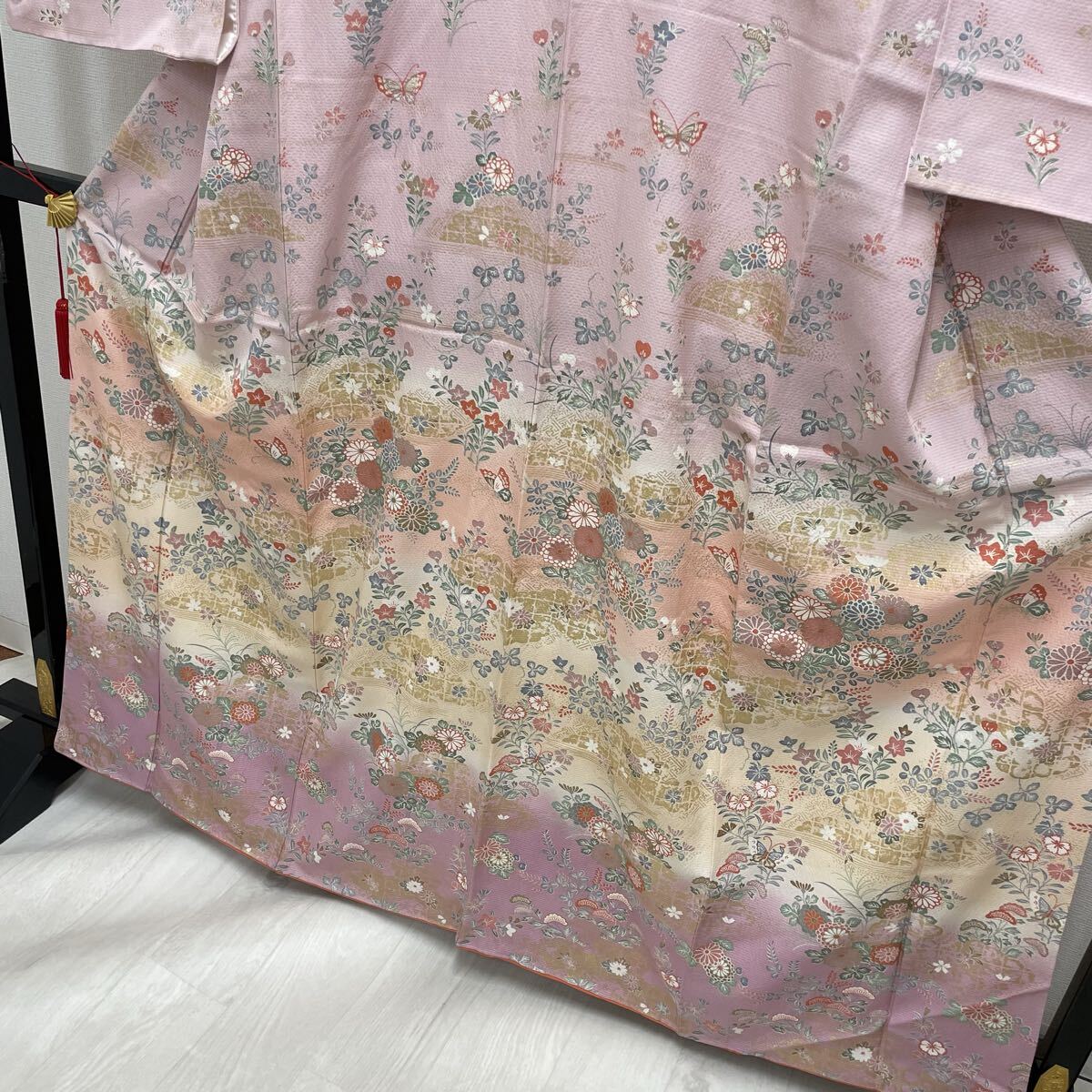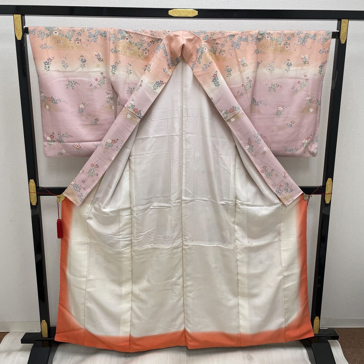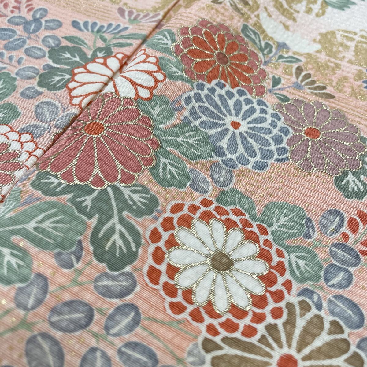 小紋付下げ ちりめん 裄66 金彩 華やかな染め 着物 正絹 W-6319