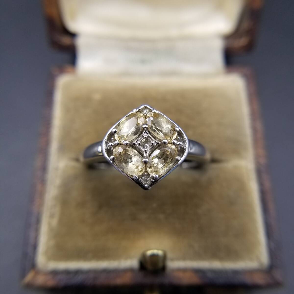 TGGC シトリン オーバル ファセット 4石 925 シルバー ヴィンテージ リング 銀 指輪 上品 エレガント 煌めき 華やかR16-V