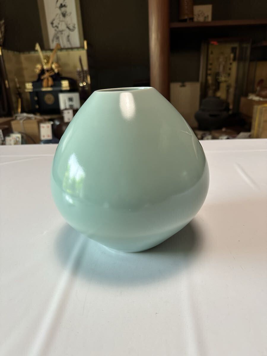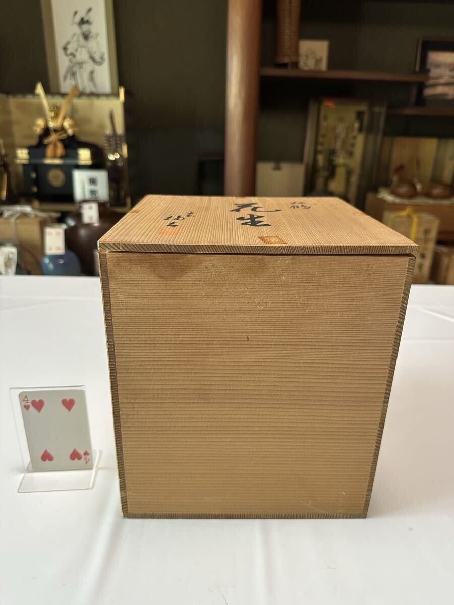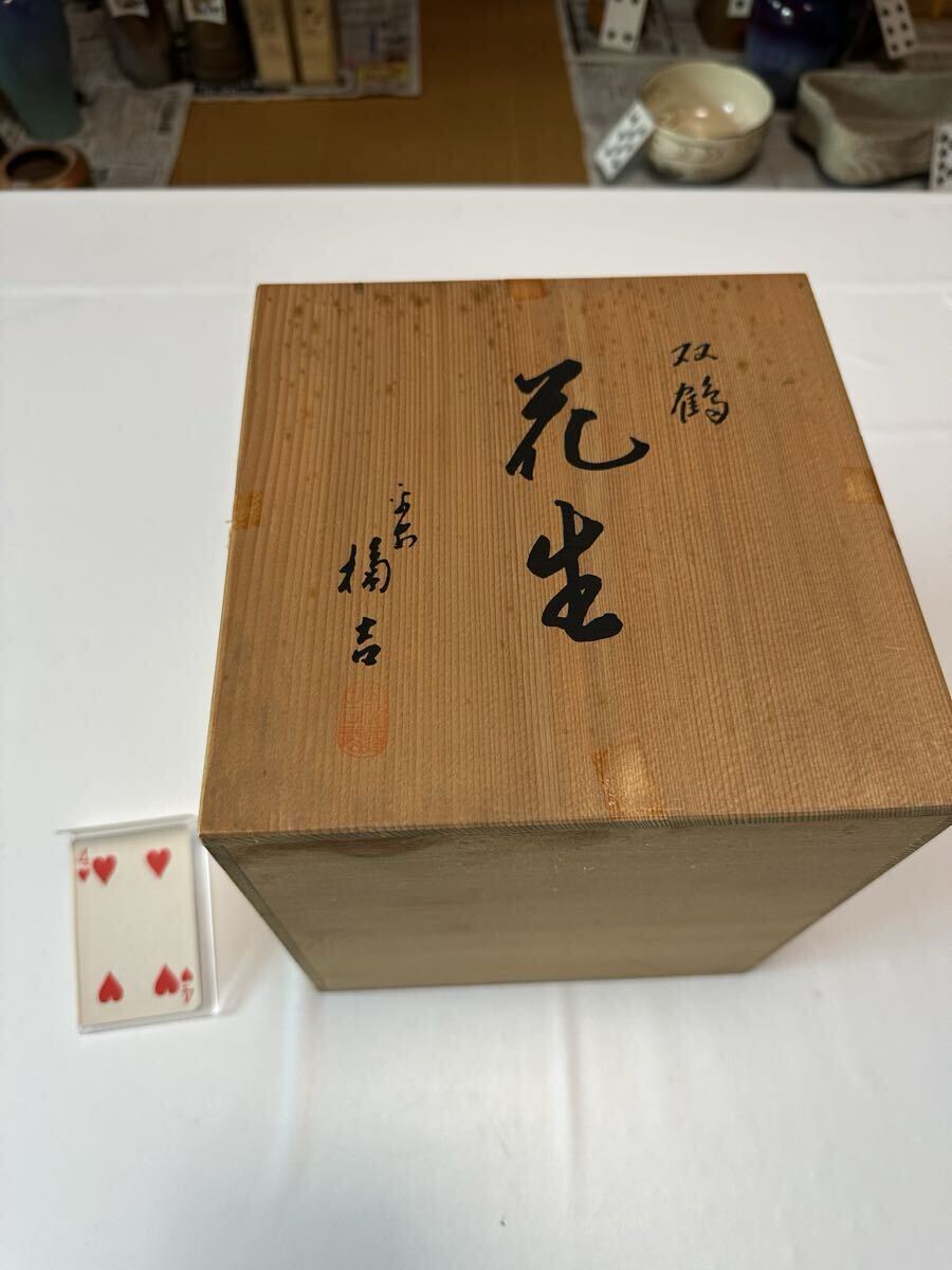 商品名:花器 花瓶 花生 京都清水焼 双鶴 橘吉作 刻印あり H=19センチ φ=18センチ 木箱入り