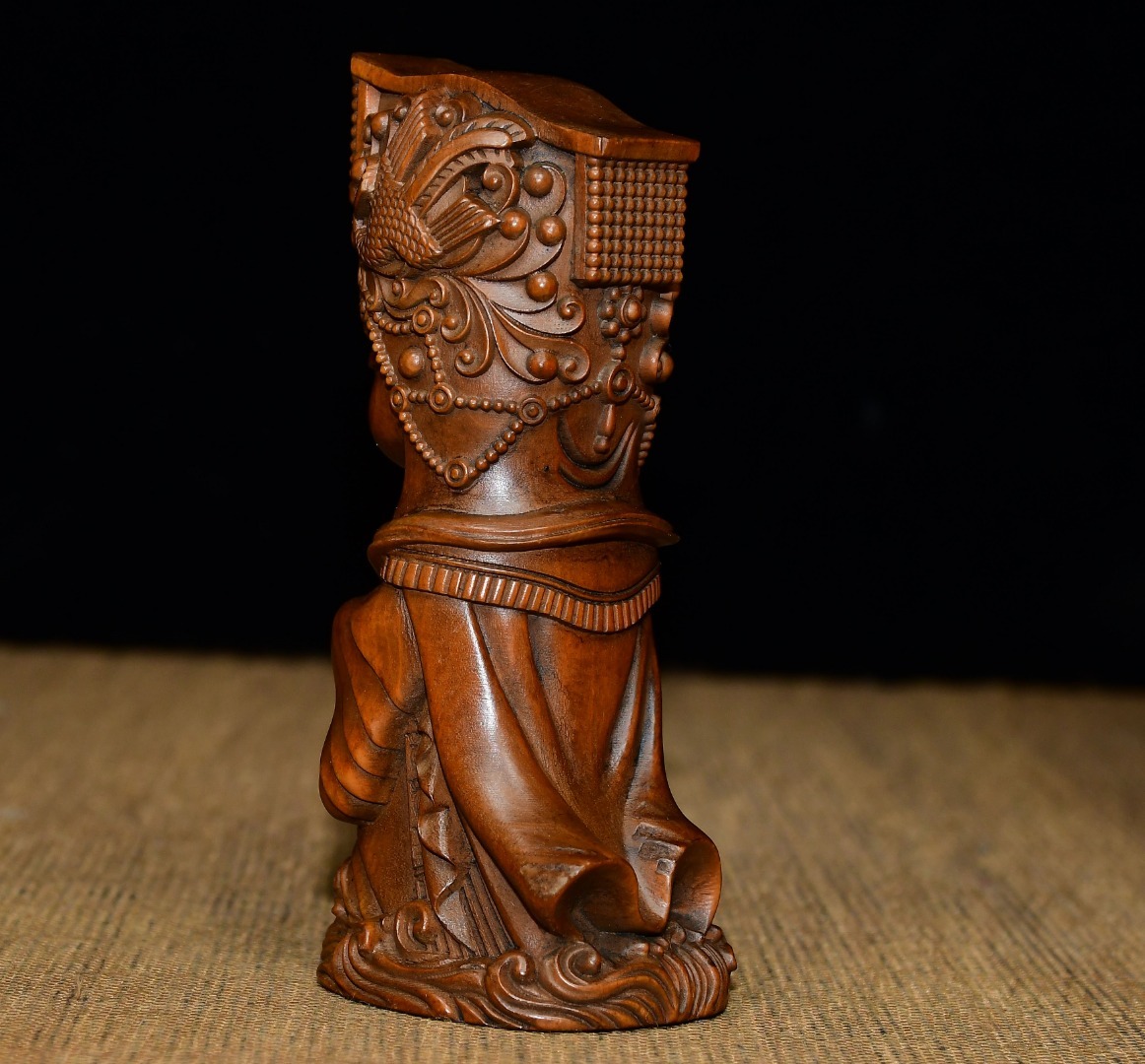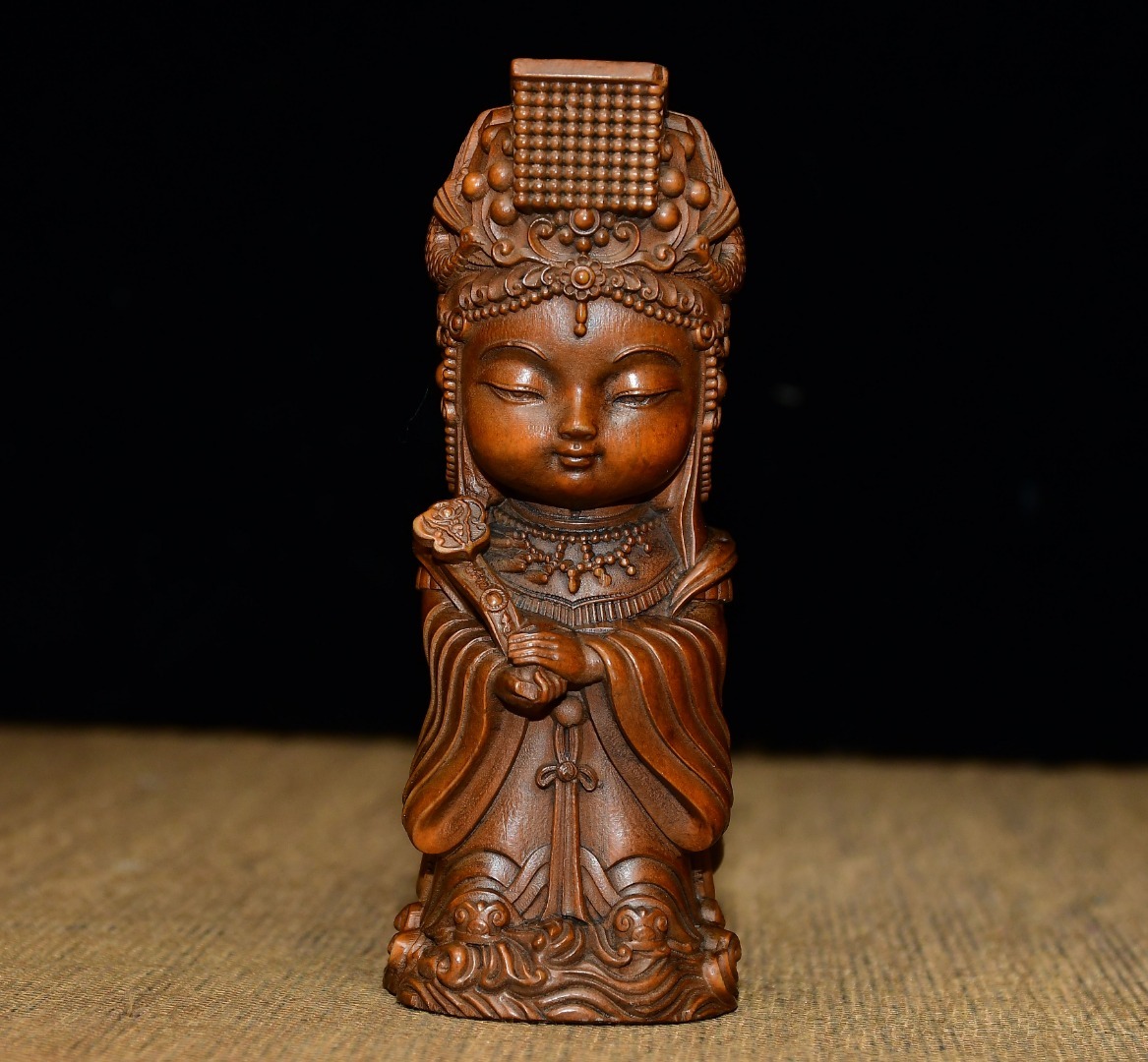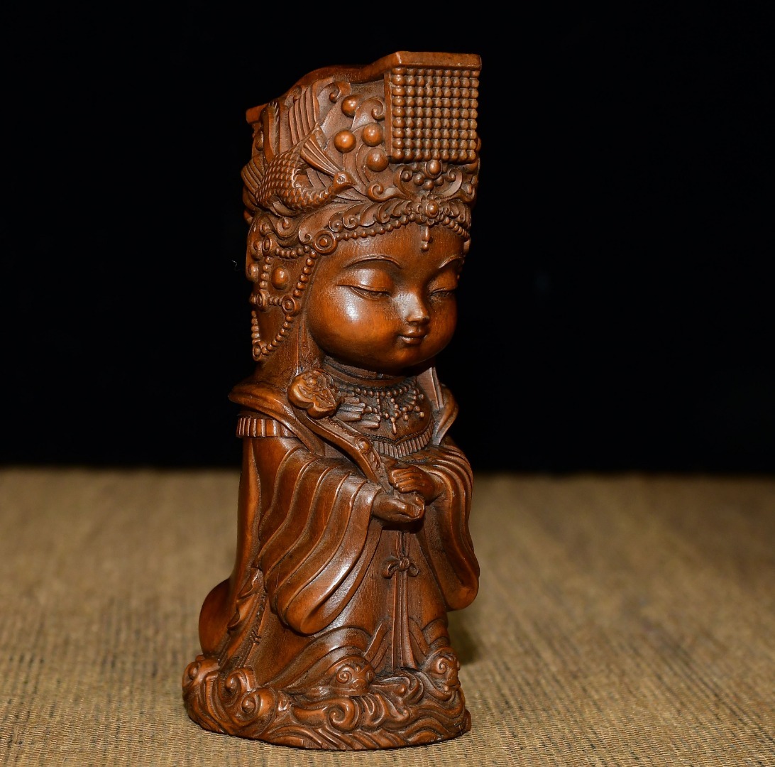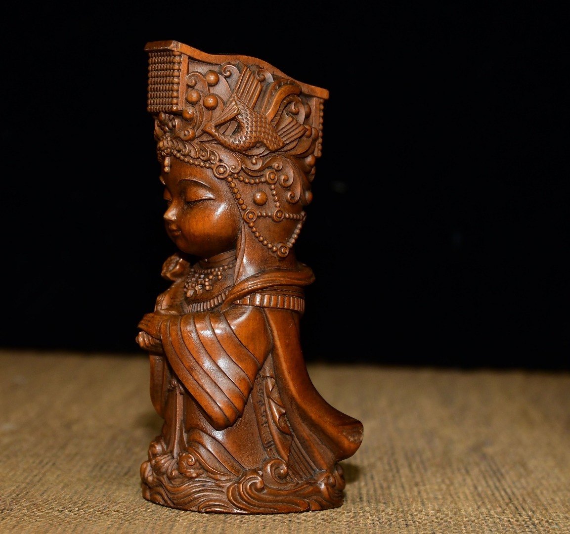 【超珍館蔵】黄楊木製 細密彫 媽祖 文房具 書道品 置物 賞物 古賞物 古董品 古美術品 時代物 旧家蔵出 稀少珍蔵品110509