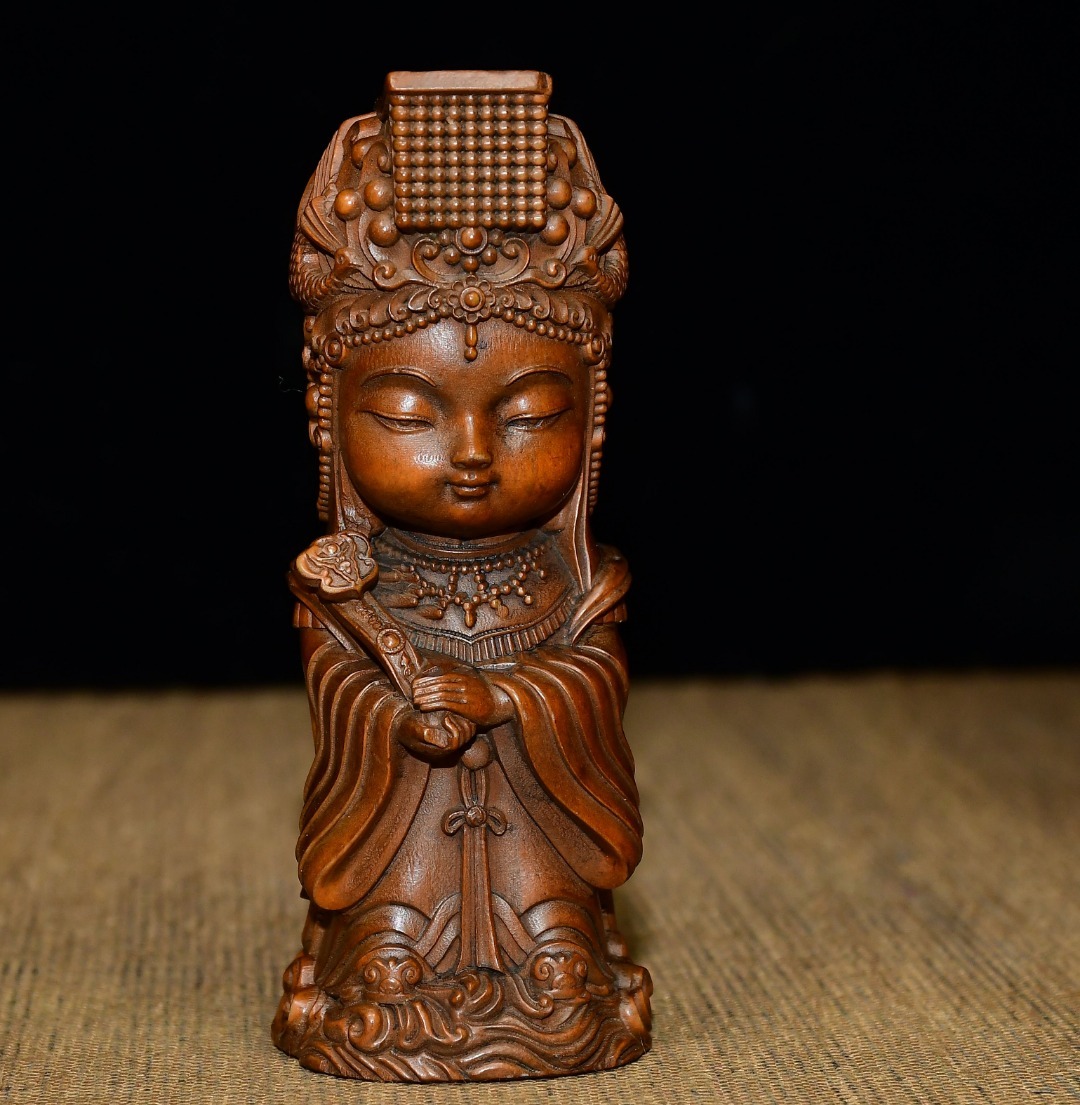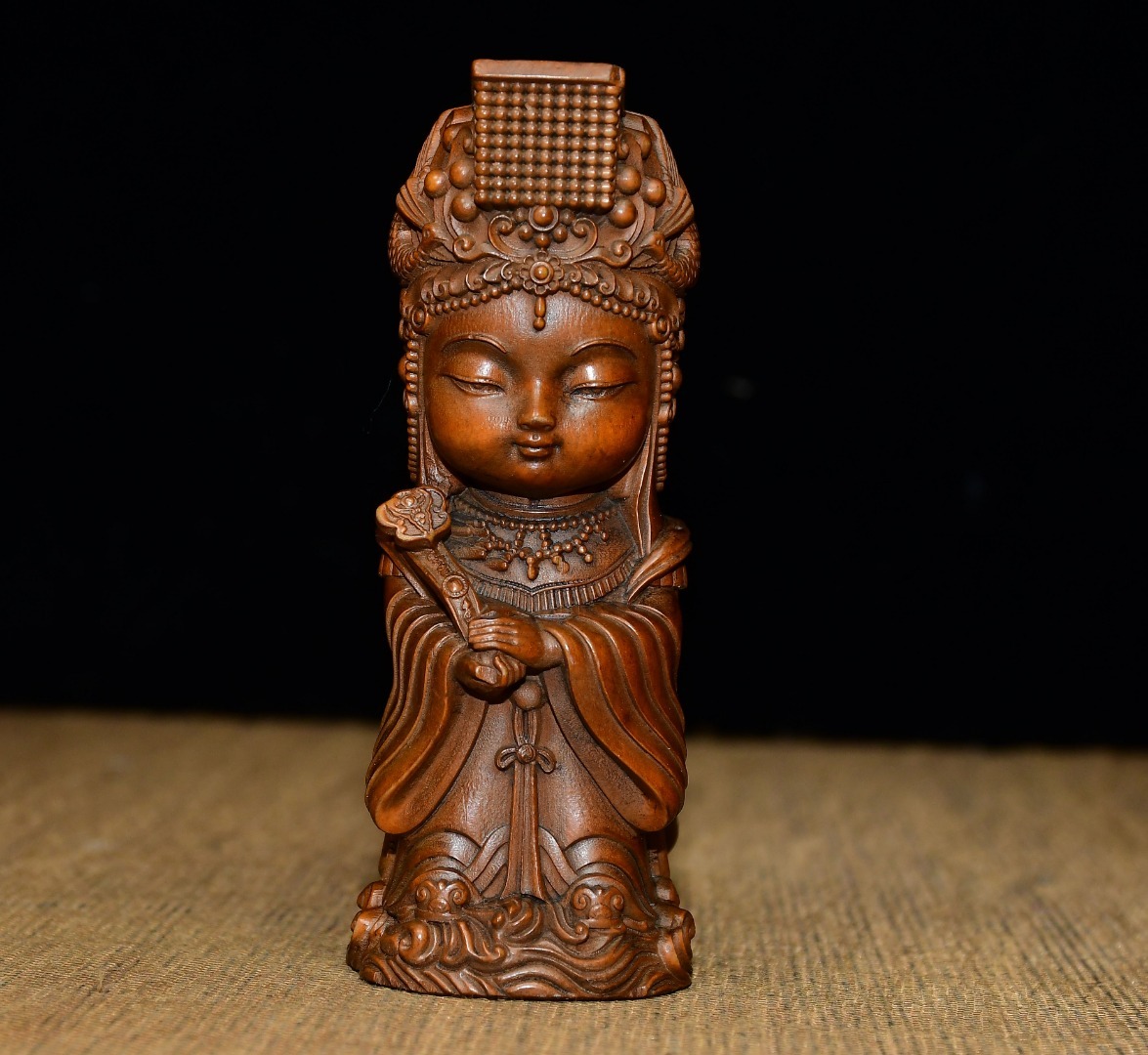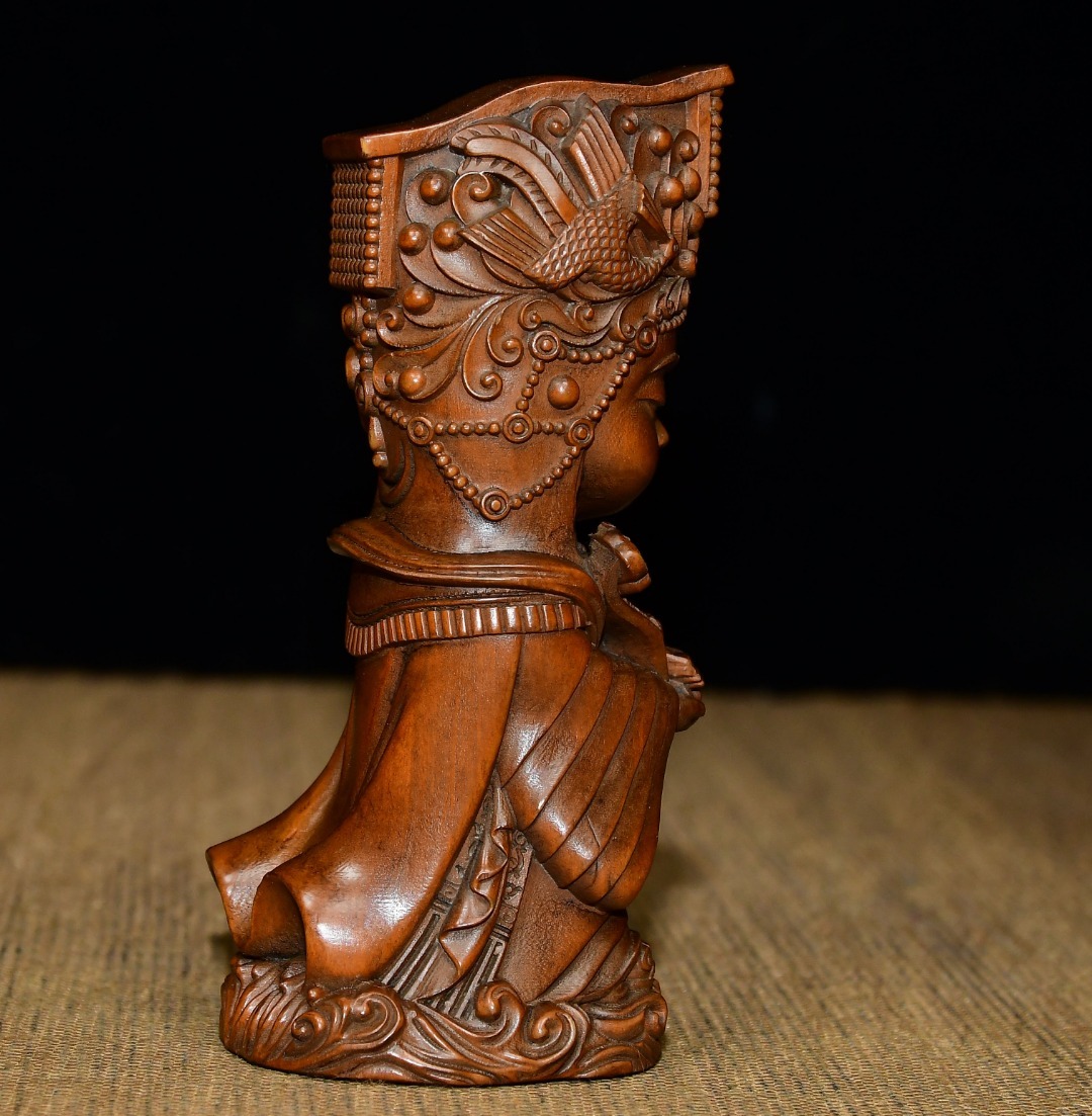 【超珍館蔵】黄楊木製 細密彫 媽祖 文房具 書道品 置物 賞物 古賞物 古董品 古美術品 時代物 旧家蔵出 稀少珍蔵品110509