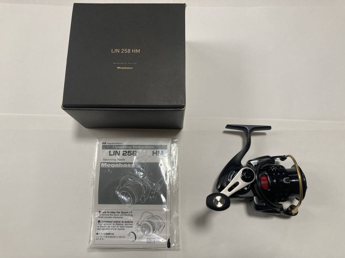 ご覧頂きまして、ありがとうございます。メガバス リン 258HMになります。状態は、写真3枚目のローターの内側にスレ傷がありますが、その他は目立つ傷なく使用感の薄い美品だと思います。回転は個体差もなく大変スムーズで、ラインローラーもサビや汚れなくスムーズに回転します。スプールエッジはきれいです。ハンドルキャップの固着はありません。付属品は揃っています。(説明書やワッシャー類は未開封になります。)コンディションの良いリールだと思いますので、この機会にぜひご検討くださいませ。お支払い方法は、Yahoo!かんたん決済で、発送はゆうパックで全国一律800円になります。