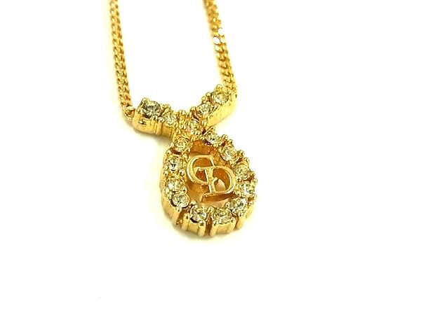 1円■美品■ ChristianDior クリスチャンディオール ヴィンテージ ラインストーン ネックレス ペンダント アクセサリー ゴールド系 FS6949