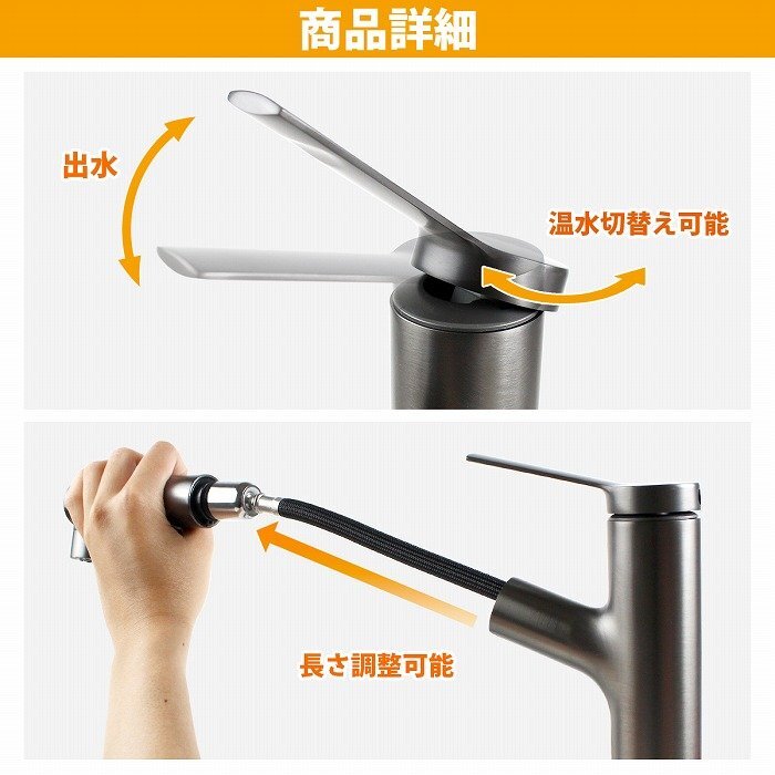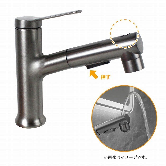 グレー 噴水機能付き 引出し式 キッチン用 混合栓 シングルレバー 蛇口 水道 リフォーム 水栓 シャワー 噴水 泡水 ストレート