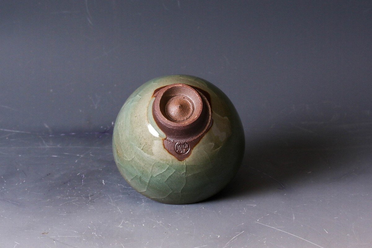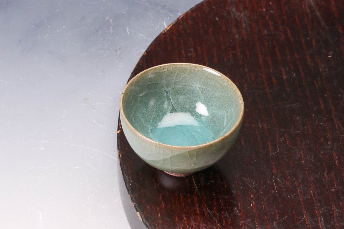 【佳香】原口卓士 青瓷ぐい呑 共箱 共布 栞 本物保証