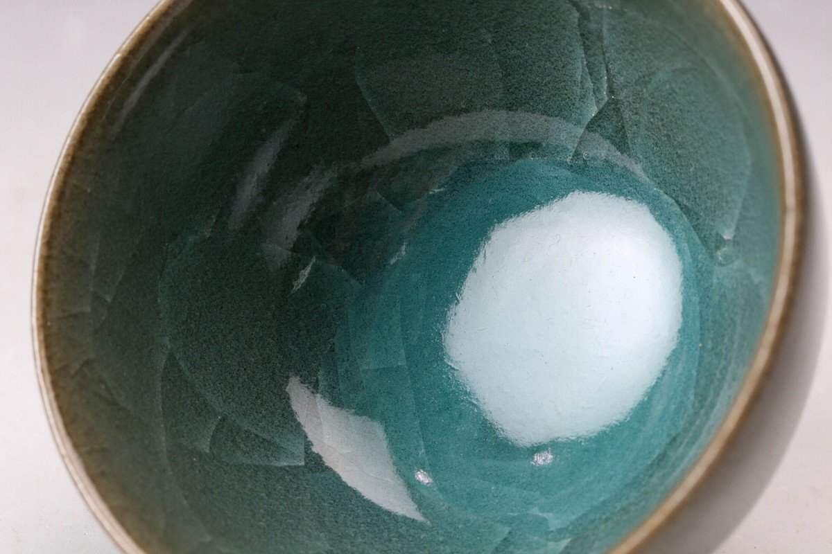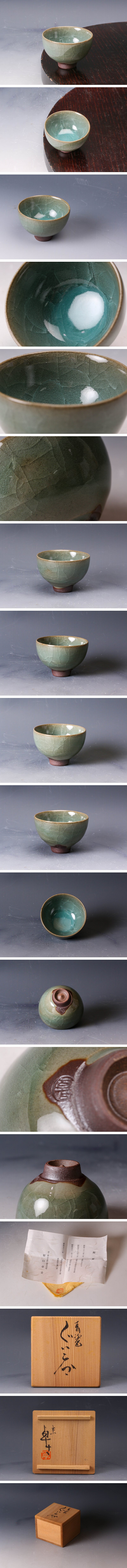 【佳香】原口卓士 青瓷ぐい呑 共箱 共布 栞 本物保証