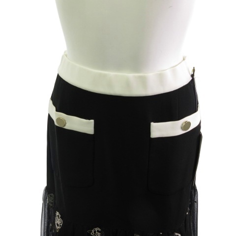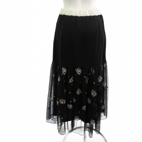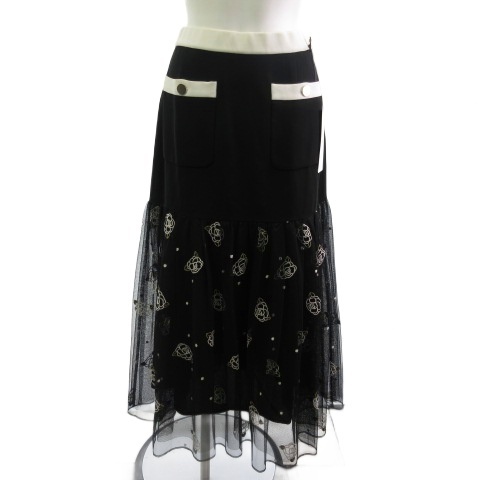 未使用品 グレースクラス GRACE Class タグ付き スカート フラワードットembスカート チュールレース ブラック 黒 36 02231 21016 レディース