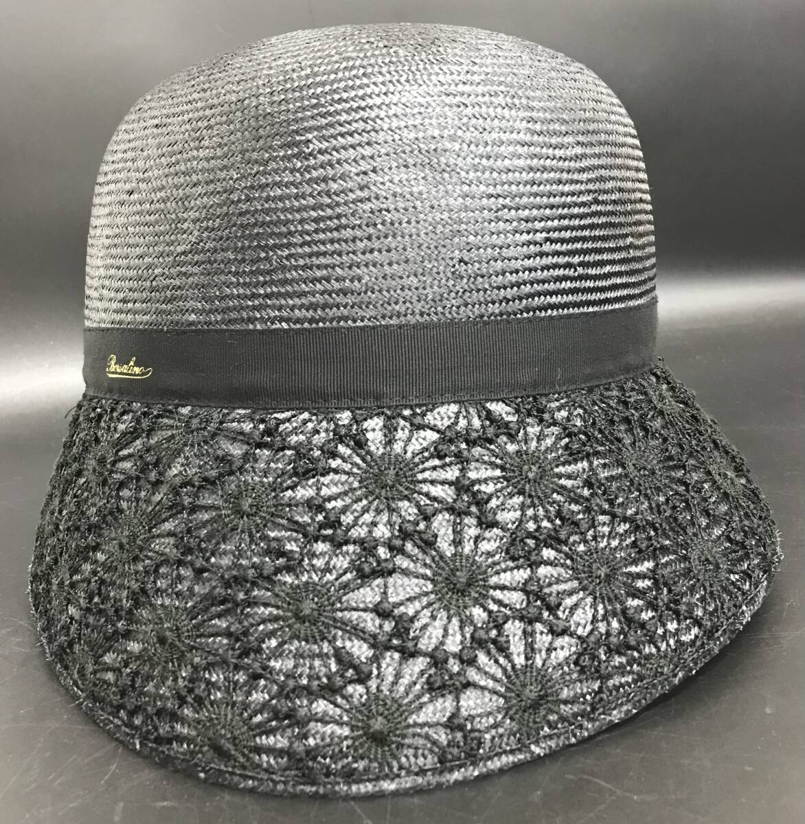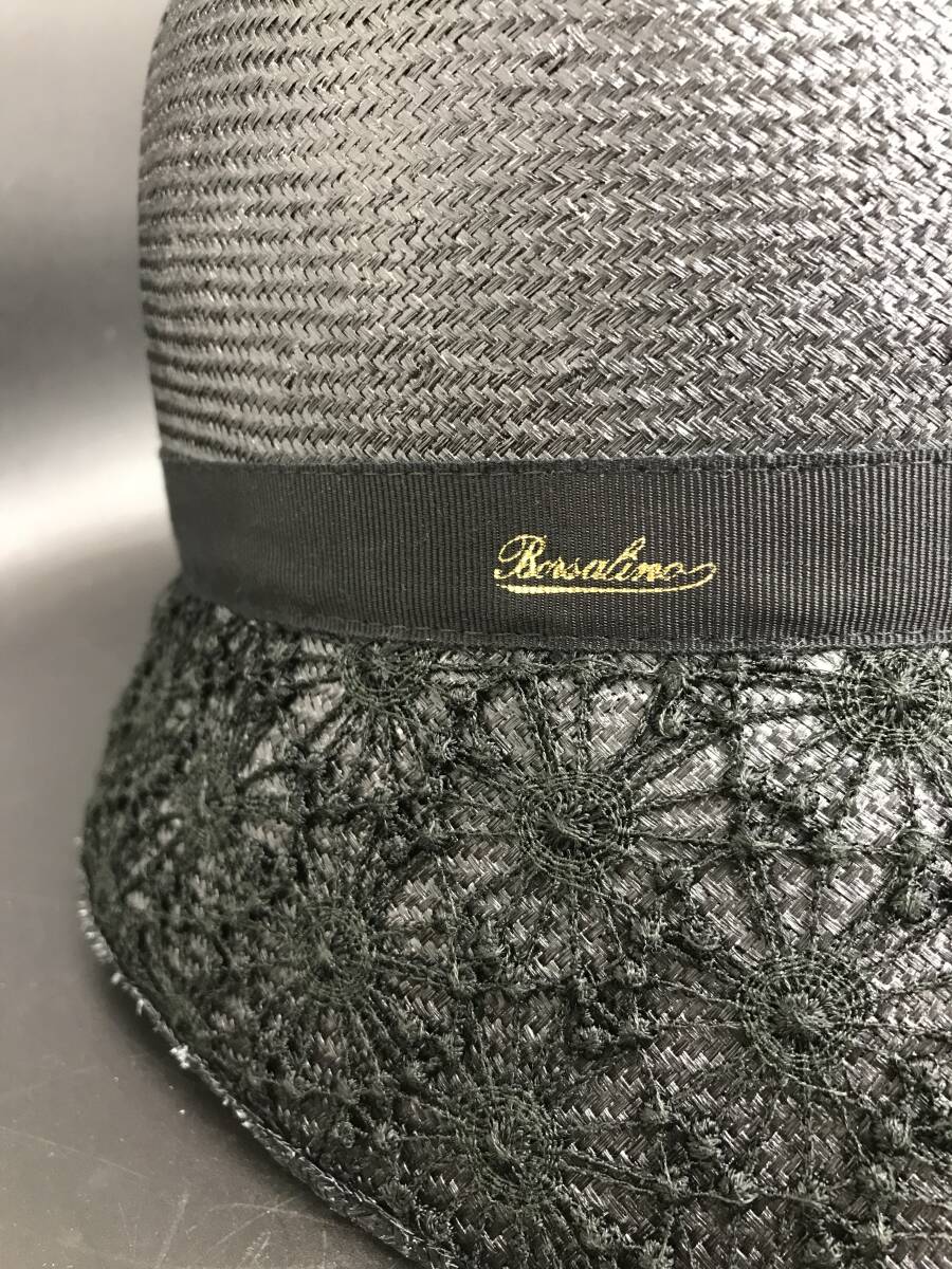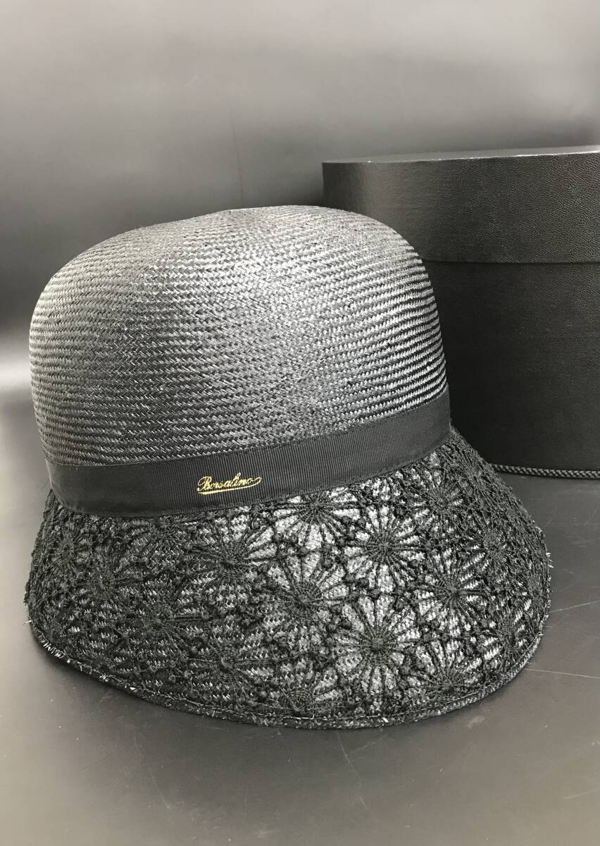 N801 ボルサリーノ Borsalino 麦わら帽子 専用箱付き ブラック 黒 レディース レース 黒レース 女性用 帽子 ハット