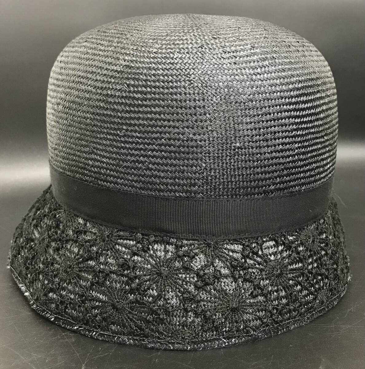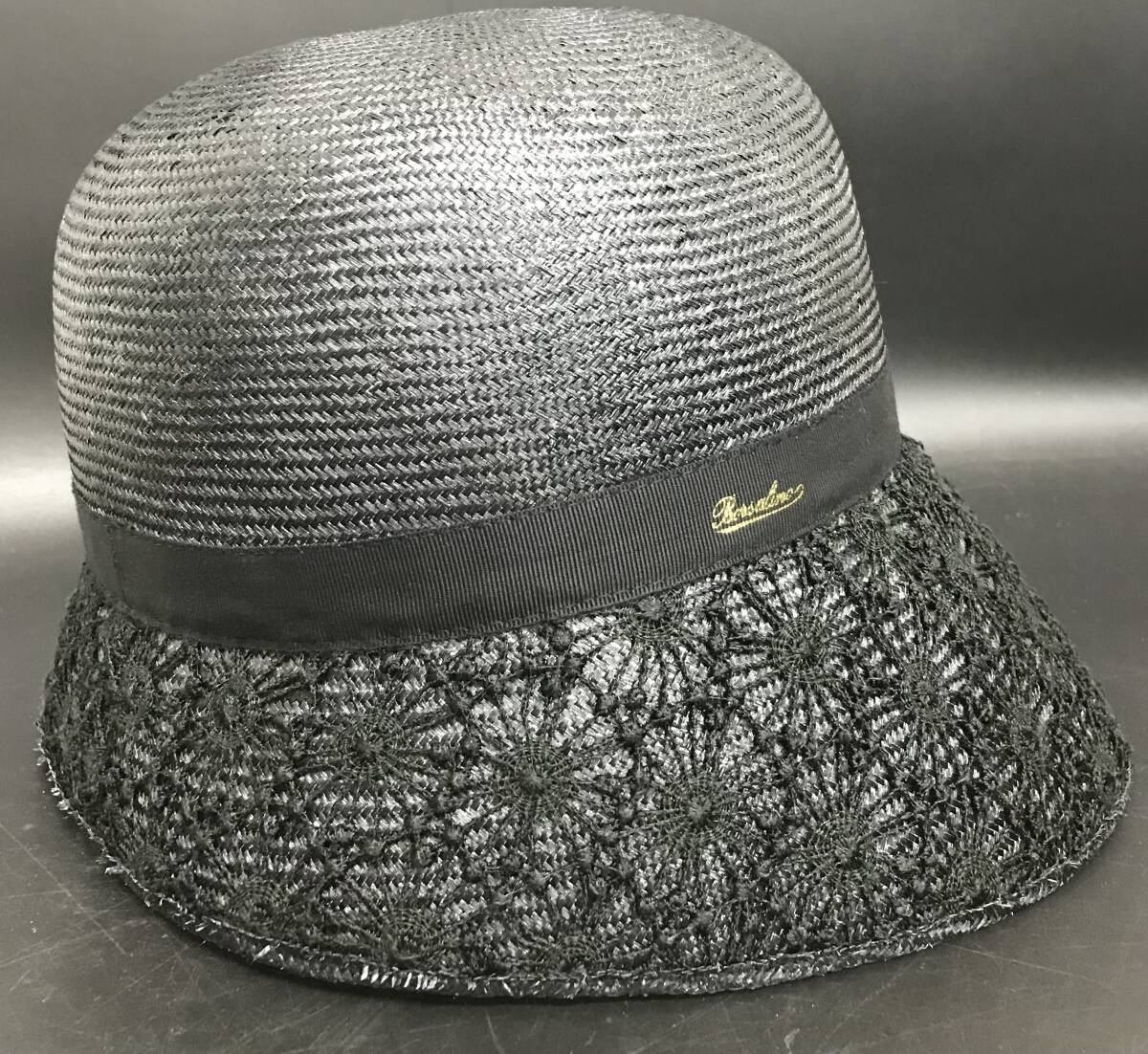 1円スタート N801 ボルサリーノ Borsalino 麦わら帽子 専用箱付き ブラック 黒 レディース レース 黒レース 女性用 帽子 ハット