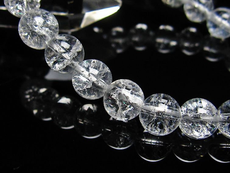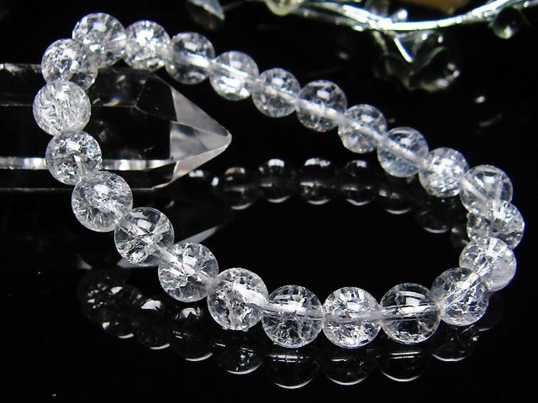 | ■商品名: クラック水晶ブレスレット ■商品ID: L01-919 ■商品重量:約 16.2g ■商品サイズ:内周約:153mm(±5mm)粒直径約:8mm(±0.5mm) 【クリスタルクォーツ(水晶)】 無色透明の水晶。世界中で最も知られ、その効果は万能とされ、水晶といわれると一般にイメージするベーシックな水晶です。 その透きとおった姿を見ているだけで、すがすがしい気持ちにさせてくれそうです。 あらゆる水晶の中でも基本となりますので、そのパワーは強力かつオールマイティとされています。どんな石とも相性が良く、他のパワーストーンと組み合わせることにより、その個性と力を引き出し、効果を増幅させるといわれています。 他の水晶やパワーストーンのパワーチャージに最適で、マイナスのエネルギーや悪い波動を取り除いて調和し、ニュートラルな状態にしてくれるとされます。もちろんこの効果は、身につけている人や、水晶を置いた室内にも発揮されるそうですので、必ず一つは持っていたい水晶です。 乾いて荒れた大地に種を蒔いても育たないように、雑念やマイナスエネルギーに固まっている時には、良いパワーを吸収してもあまり効果が感じられず、良いことやチャンスがあってもピンときません。一度クリーンにして曇りの無い状態の方が、他のパワーストーンの力も吸収しやすく、補給した効果も生きてくるといえるでしょう。 ◆ワンポイント情報 パワーチャージの際には、水晶クラスターやさざれ石が最適とされています。チャージしたい石をクラスターや敷き詰めたさざれ石の上に乗せ、1日~3日くらいすればチャージ完了です。空間の清めには少し大きめのクラスターが最適といえるでしょう。 【水晶(石英、クリスタルクォーツ)】 水晶とは石英を指しますが、一般的に無色透明のものをクリアクォーツやロッククリスタルと呼んでいます。 水のように美しく透き通ったものが良いと思われがちですが、内部にヒビや他の鉱物などのインクルージョン(内包物)が入っているものがあり、それが天然物の証。また、インクルージョンによって様々な種類に分類され、それぞれ違った印象を与えてくれます。 古くから呪い事に使われてきた水晶に秘められたパワーはとても万能で、あらゆる場面に対応するといわれています。特に邪気を祓う力が強いため、人間関係を円滑にしたり、心身をクリアな状態にしたい場合に最適です。また空間を浄化する作用もあるとされ、インテリアとしても高い人気を誇っています。 石自体に強い自浄作用があり、他のパワーストーンが吸収した負のエネルギーを浄化するといわれています。更にアクセサリーとして他の石と組み合わせる場合、それぞれの石の個性を引き出しバランスを取ってくれる効果があるそうなので、ぜひとも組み込んでおきたいですね。 パワーストーン入門に最適な水晶ですが、愛好家にとってはかなり奥が深く最後に行き着くのもこの石なんだそうです。何もかもを見透かすような透明な水晶には、本当に神秘的なパワーが宿っているのかもしれません。 |