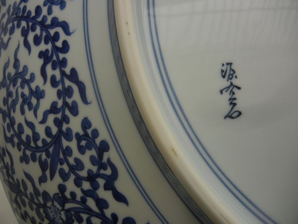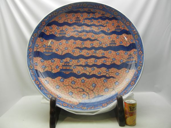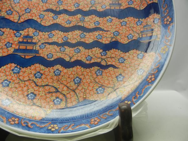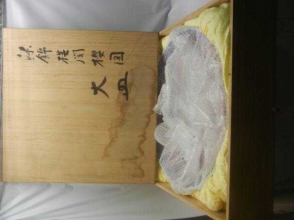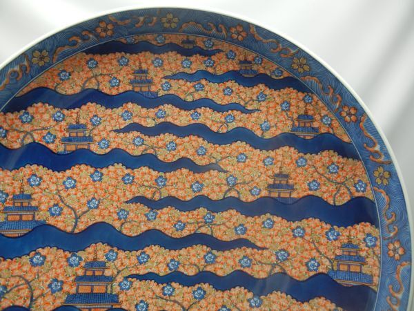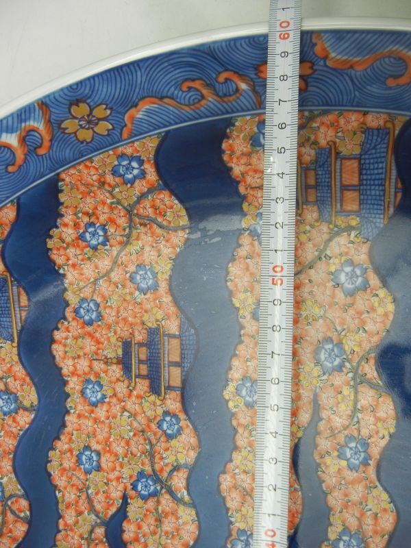 ● 希少 2尺 大皿  源右衛門 染錦 楼閣桜図 大皿 ● 共箱 約60.5cm (写真8参照)