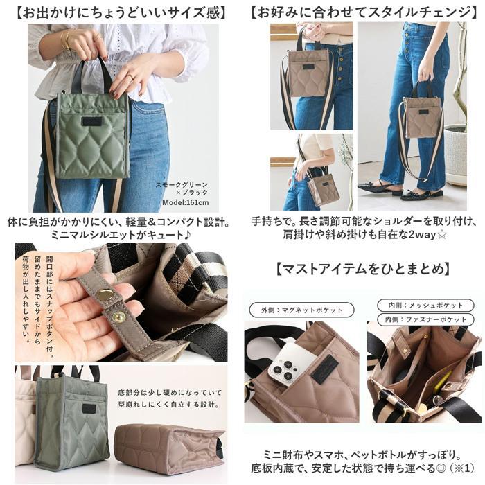 | 商品説明 | ・・【お出かけの相棒にぴったり】 ・身軽にお出かけ!最低限をまとめて気軽に持ち出せる「LIZDAYS ショルダーバッグ」。 ・【お出かけにちょうどいいサイズ感】 ・体に負担がかかりにくい、軽量&コンパクト設計。ミニマルシルエットがキュート♪ ・【お好みに合わせてスタイルチェンジ】 ・手持ちで。長さ調節可能なショルダーを取り付け、肩掛けや斜め掛けも自在な2way☆ ・【いつでもどこでも開け閉め簡単】 ・開口部はスナップボタン式ベルト。いつでもサッと開け閉めでき、飛び出しをガード。 ・【マストアイテムをひとまとめ】 ・ミニ財布やスマホ、ペットボトルがすっぽり。底板内蔵で、安定した状態で持ち運べる◎ ・(※1)500mlペットボトルを収納した場合、上部が若干飛び出します。 ・【サクッと取り出せて迷子知らず】 ・合計3個のポケットを配置。細々した物も整頓しやすく、バッグの中で探す手間が不要。 ・【ちょっとの雨なら大丈夫】 ・水滴や汚れを弾くはっ水加工を施した、高密度ナイロン生地を使用。お手入れも拭き取るだけ。 ・(※2)完全防水ではありません。 ・【大人コーデに素敵にマッチ】 ・ふっくらキルティングに、ラインデザインのショルダーがアクセント♪年代問わず持ちやすい! ・【ポケット仕様】 ・内側:ファスナーポケット×1、メッシュポケット×1 ・前面:マグネットポケット×1 |