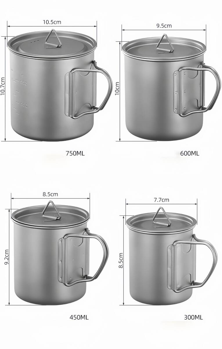 【新品】純チタンマグカップ(蝶ハンドル)アウトドア 600ml 107g 蓋付き 軽量 頑丈 直火