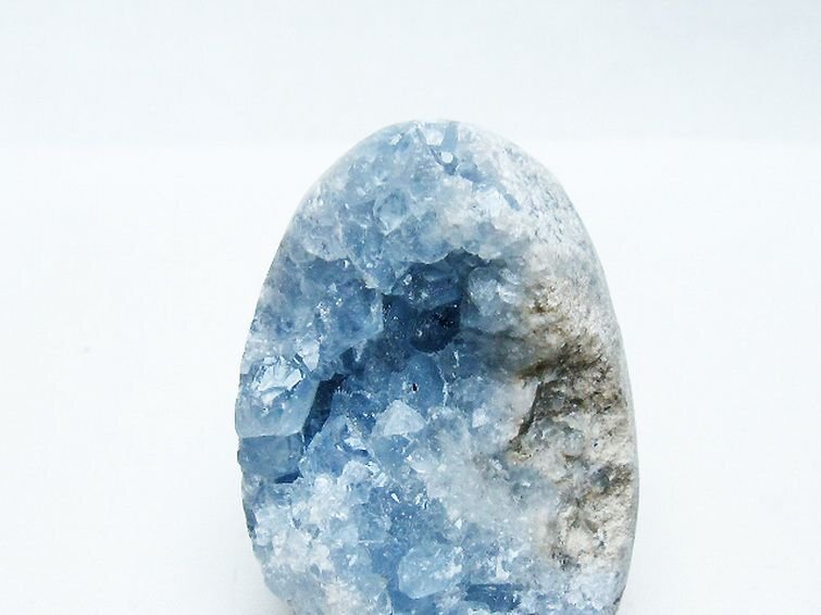 | ■商品名: セレスタイト天青石原石 ■商品ID: T756-5899 ■商品重量:約 152g ■商品サイズ: 高約:58mm 横約:40mm 厚約:35mm 【セレスタイト(天青石)】 セレスタイトは和名で「天青石」と呼ばれるように、晴れ渡った空を思わせる爽やかな青色が美しい石です。 「清浄・博愛・休息」を象徴する強力な浄化効果とヒーリング能力を持ち、心身にかかるストレスや苦痛を癒すとされています。 不安やストレスで高ぶった精神を静めて深い安らぎと心身の浄化をもたらしてくれますので、原石などを寝室に置くことで安眠効果が期待できます。 また、相手視点に立って物事を考えられる思考力をもたらし人間関係を円滑にする効果もありますので、恋人や夫婦円満のお守りとしてもオススメです。 イタリアのシチリア島で発見されたセレスタイトですが、現在イタリアでは枯渇状態になってしまい採掘が困難なようです。 そのため現在では主要な産地としてマダガスカルが注目され、マダガスカル産のセレスタイトは清涼感を感じる透明度のある水色が特徴です。 ⇒ セレスタイトをもっと詳しく ◆ワンポイント情報 セレスタイトは非常に柔らかく、母岩が脆い場合があるため、流水につけると石が壊れてしまう場合があります。クリスタルを用いたパワーチャージや、セージや月光浴がお勧めです。 |