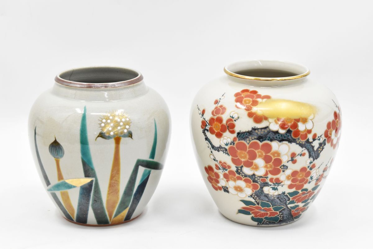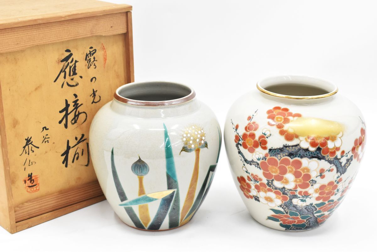 (1285L 1105T9)1円~ 九谷焼 花瓶 2点セット 栄山窯 泰山窯 露の光 花器 花入 花生 飾壷 華道具 陶器 まとめて